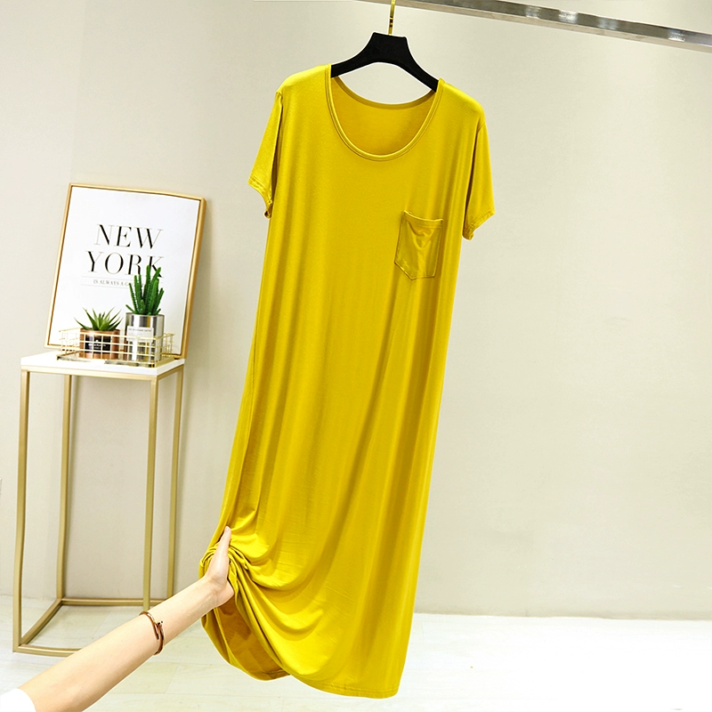 | nameOriginal | Modal loose A-line skirt with round neck and short sleeves |
