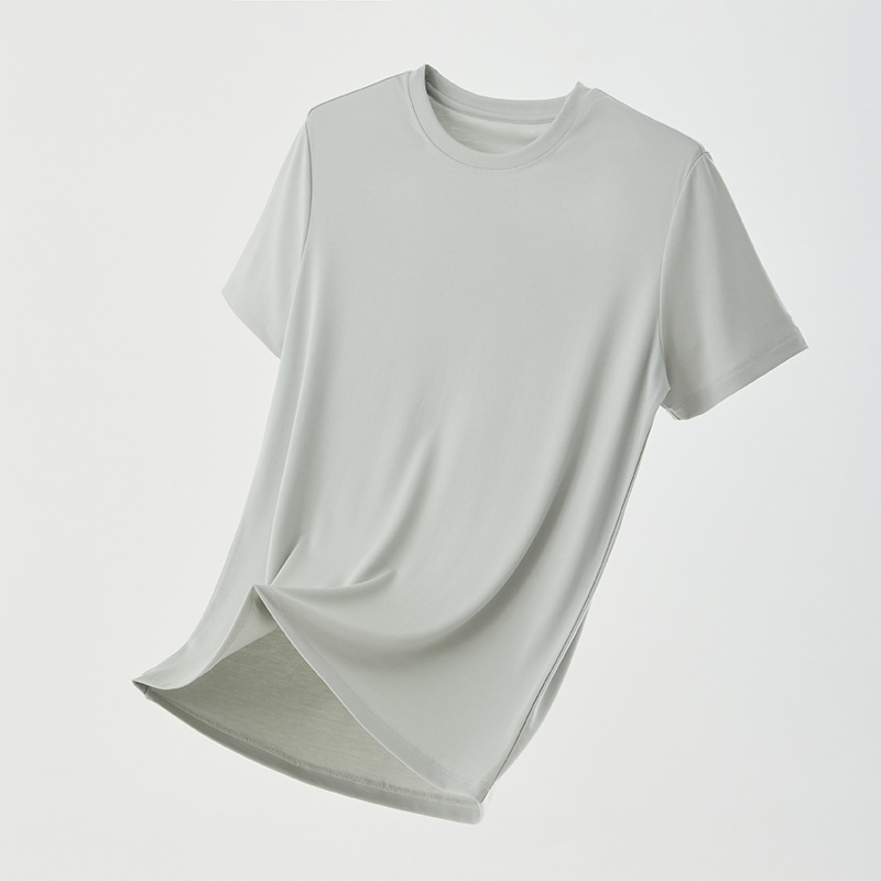 Modal Men’s Short-sleeved T-shirt Summer Thin Round Neck Solid Color Silk Protein Heavy-weight T-shirt Casual Men’s Wear