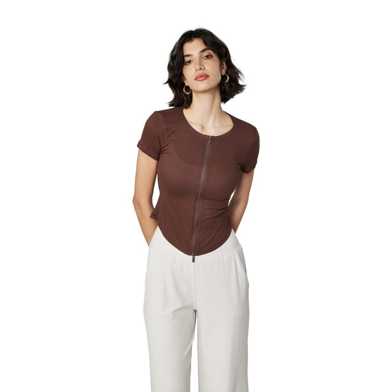 | nameOriginal | Modal Naked Slim-fit Sports T-shirt Women's Crewneck Zipper Yoga Clothes Casual Small Waist Fitness Short-sleeved Summer |