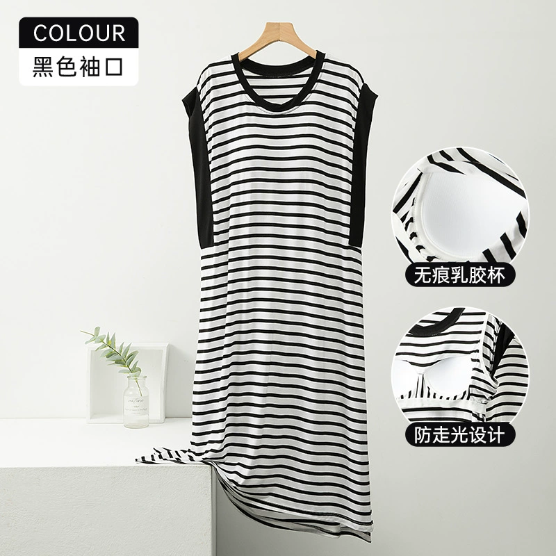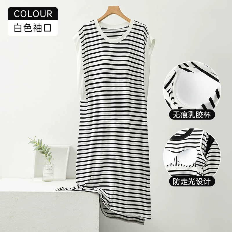 | nameOriginal | Modal padded cup bra one-piece striped sleeveless nightgown home skirt loose large size bra home skirt |