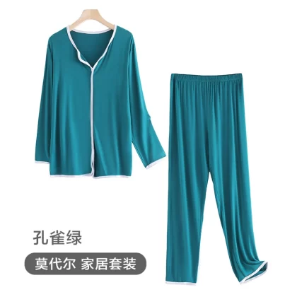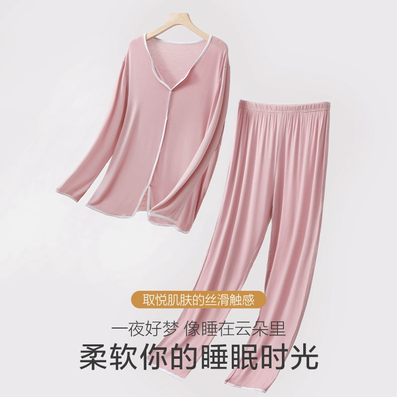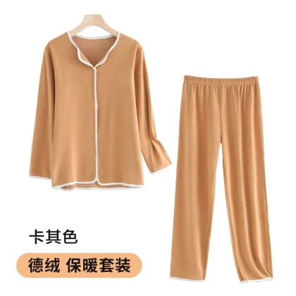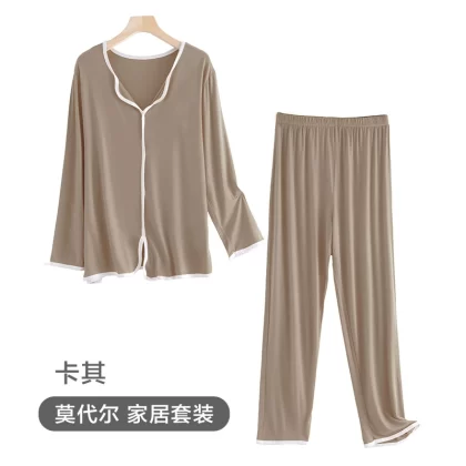 Modal Pajamas for Women Spring and Autumn Large Size Loose Internet Celebrity Style Home Clothes Autumn and Winter Plus Velvet Thickened Outer Wear Long Sleeve Suit