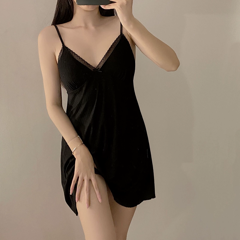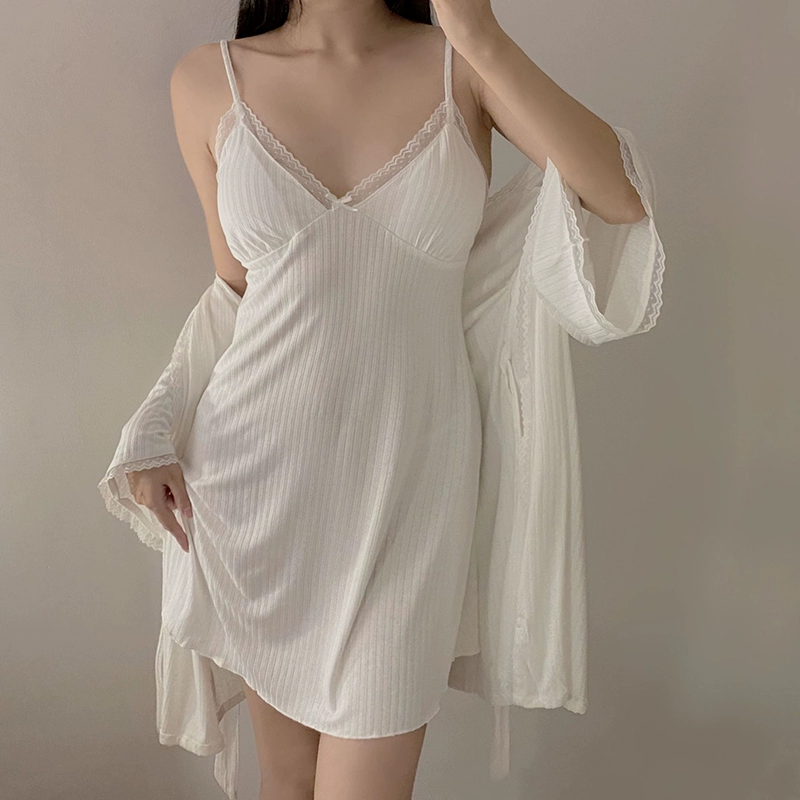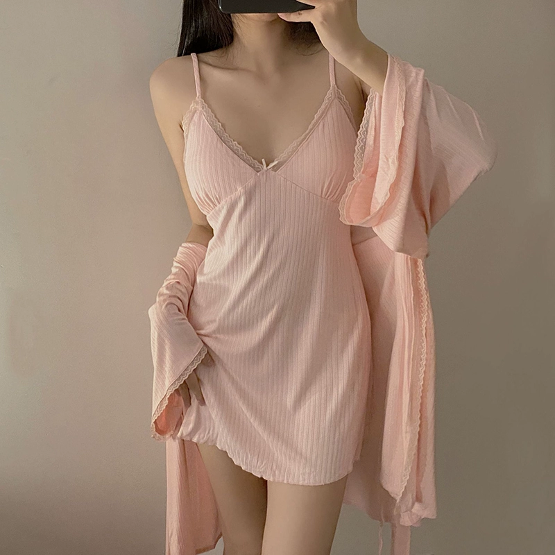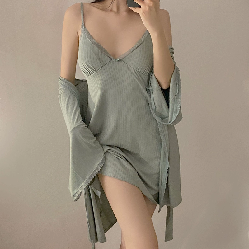 | nameOriginal | Modal pajamas for women spring and summer long-sleeved home clothes comfortable and simple V-neck sexy suspender nightgown Korean version |