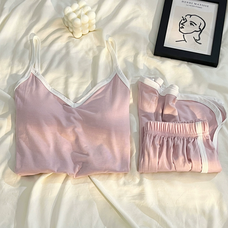 | nameOriginal | Modal Pajamas for Women with Breast Pad Suspenders Summer 2024 New Sexy Simple Sleeveless Home Clothes Set |