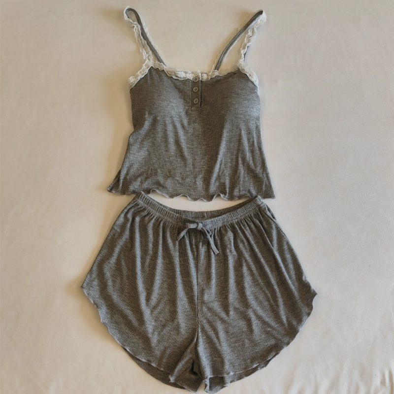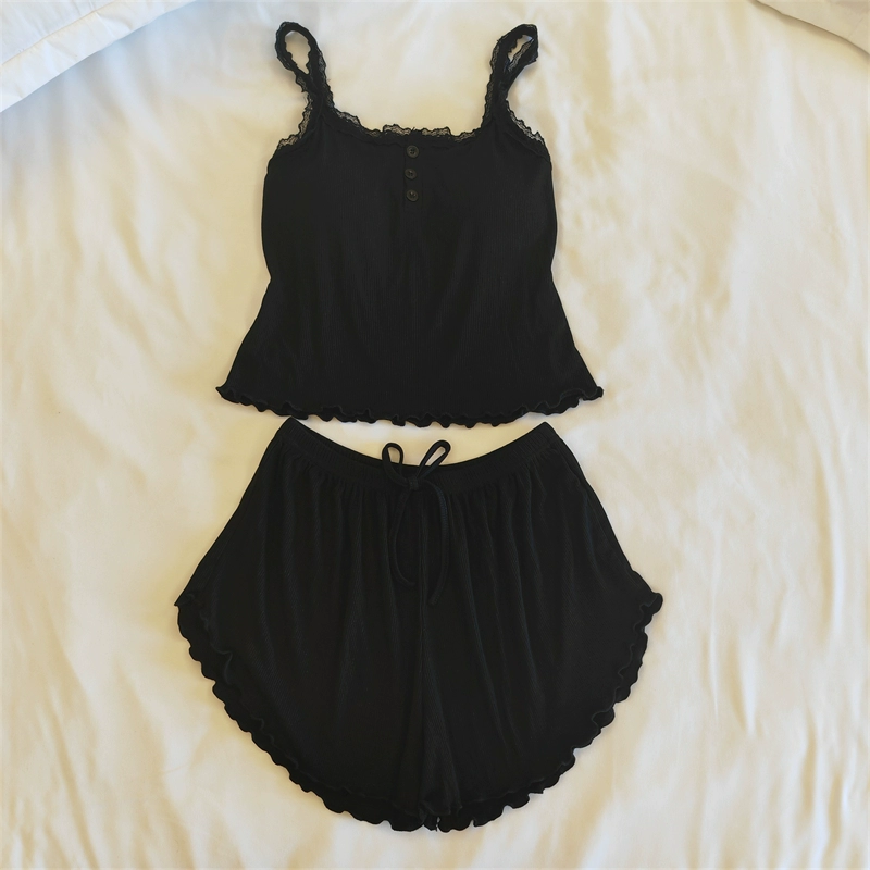 | nameOriginal | Modal pajamas with breast pads for women summer suspender shorts two-piece set new style pure lust style simple solid color home clothes |