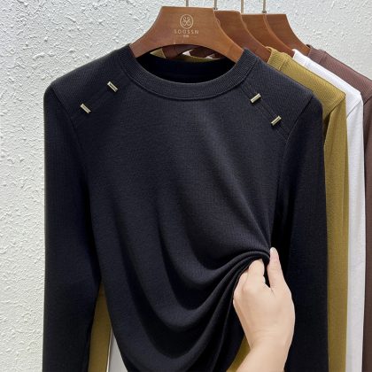 | nameOriginal | Modal round neck bottoming shirt Women's inner wear 2024 new black autumn and winter slim fit outer wear long sleeve T-shirt top |