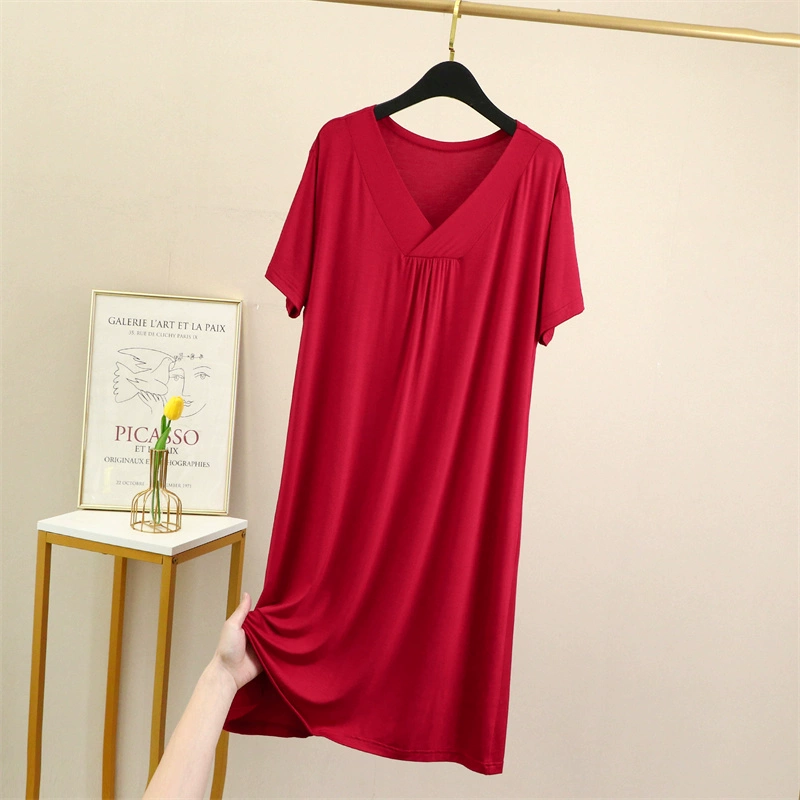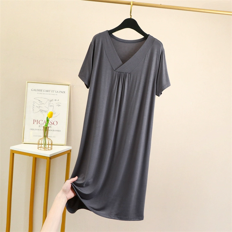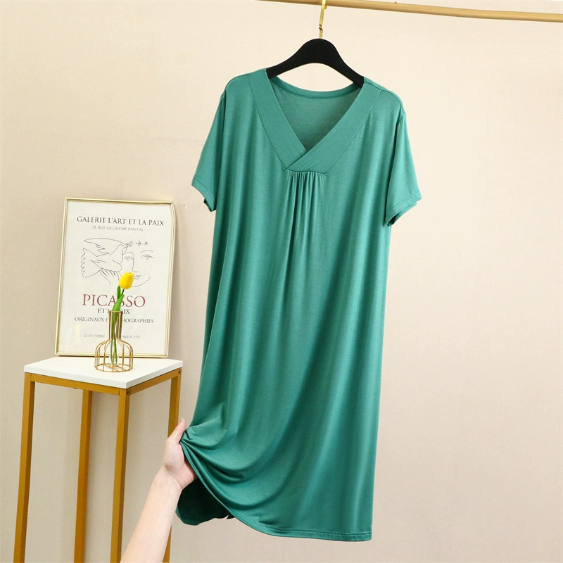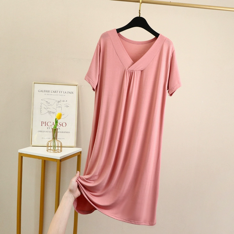 | nameOriginal | Modal short-sleeved dress for women 2024 summer thin V-neck A-line skirt mid-length fat mm over-the-knee casual skirt |