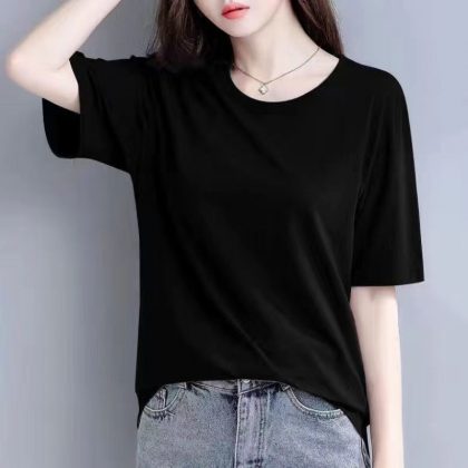 | nameOriginal | Modal Short-sleeved Shirt Women's Summer New Loose Half-sleeved T-shirt Black Base Shirt All-match Slimming Top |