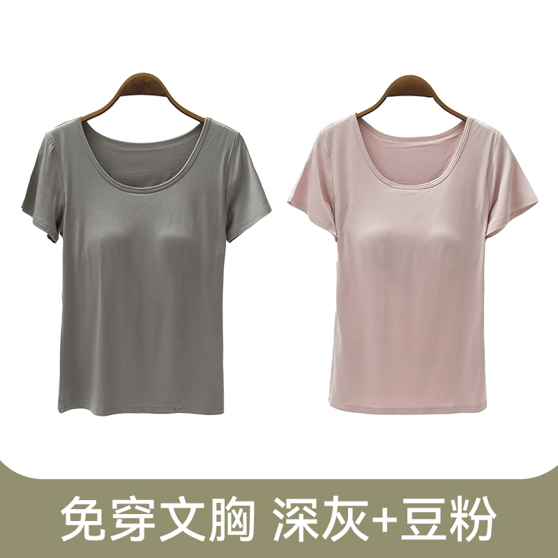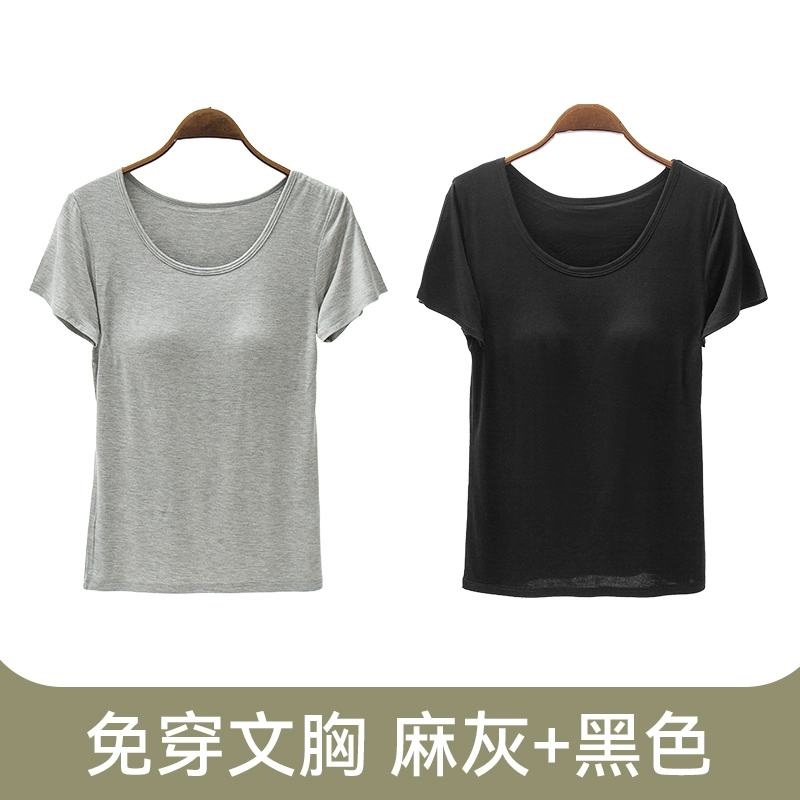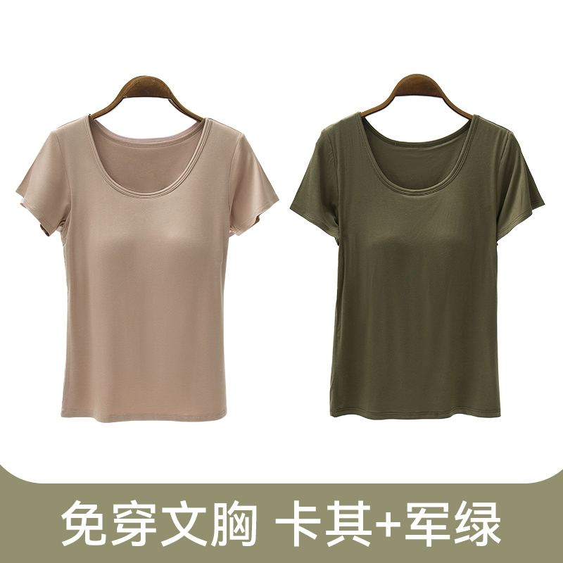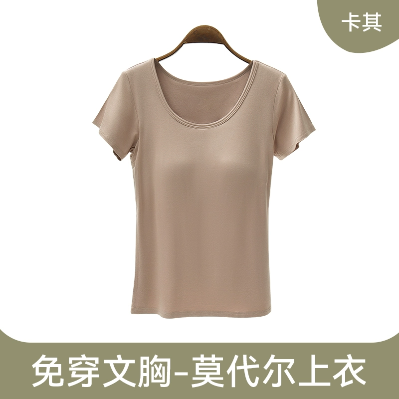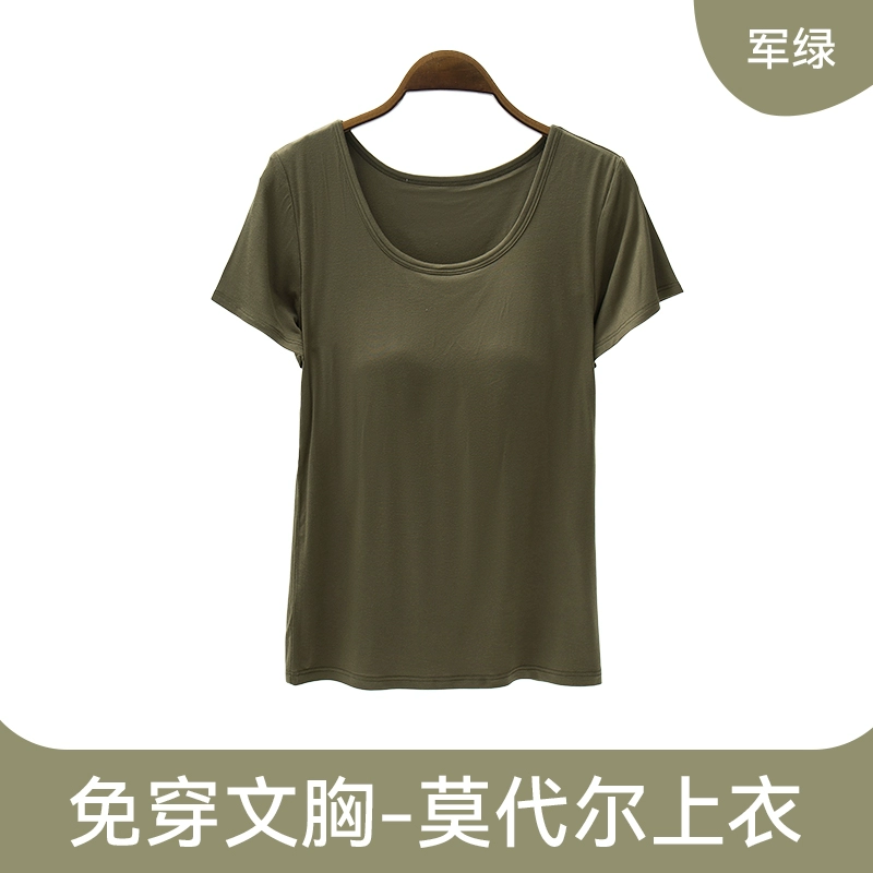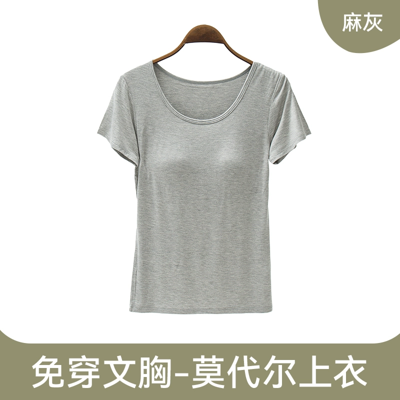 | nameOriginal | Modal short-sleeved T-shirt bottoming top underwear with chest pad all-in-one anti-sagging bra push-up anti-exposure large size |