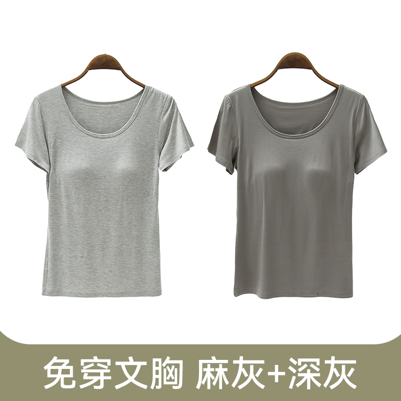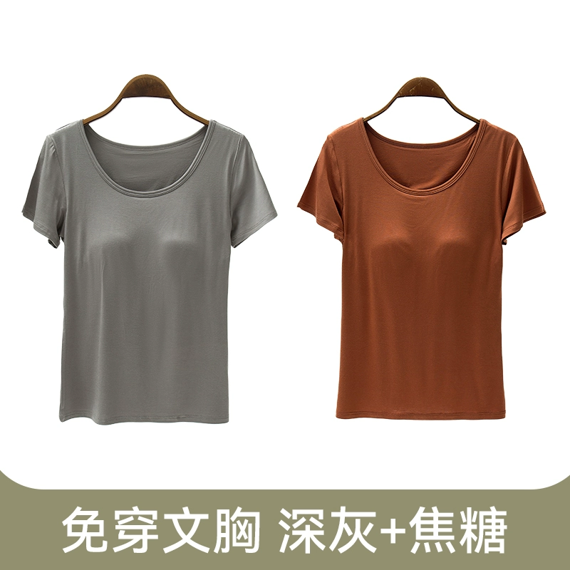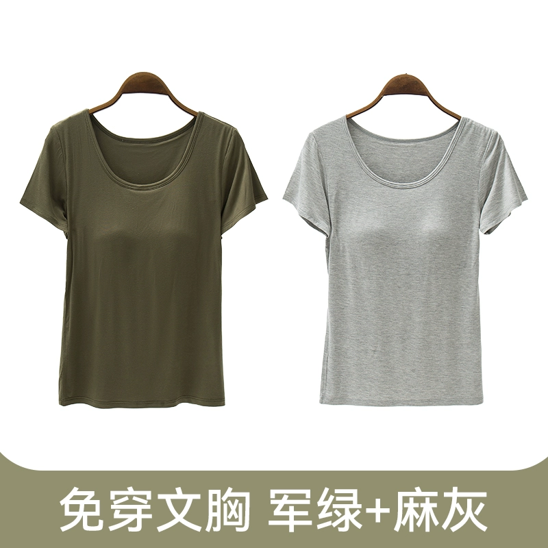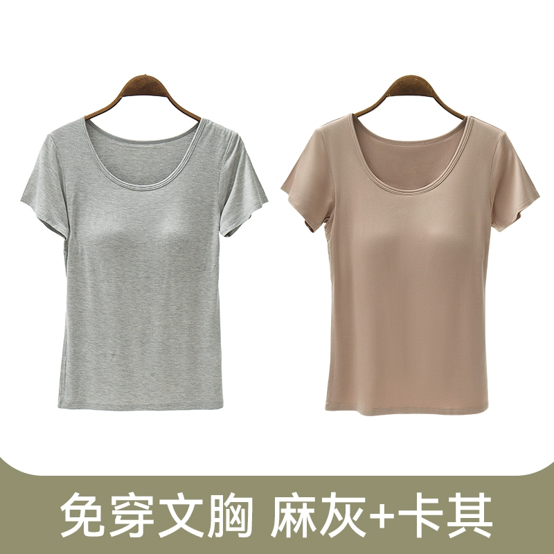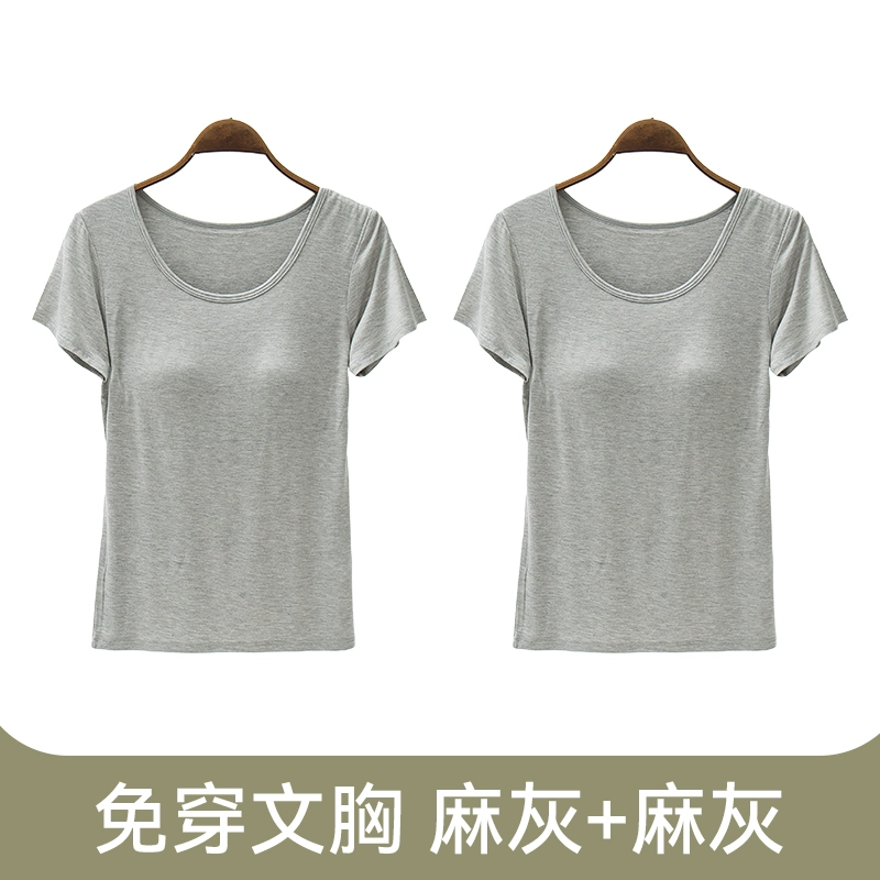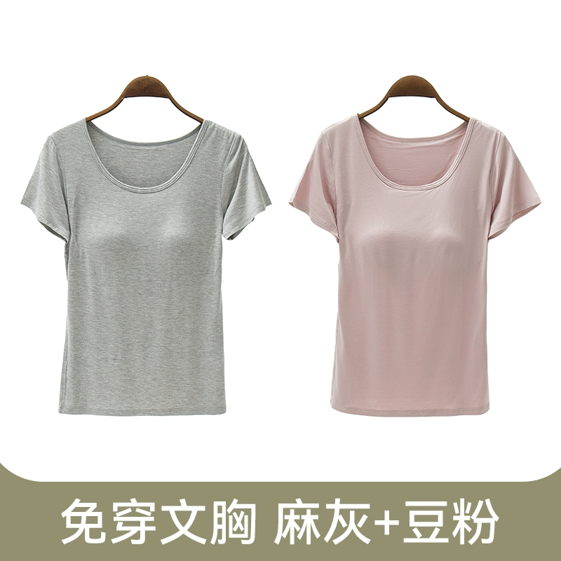| nameOriginal | Modal short-sleeved T-shirt bottoming top underwear with chest pad all-in-one anti-sagging bra push-up anti-exposure large size |