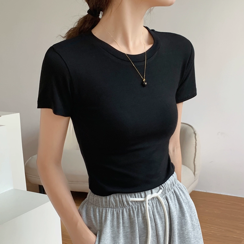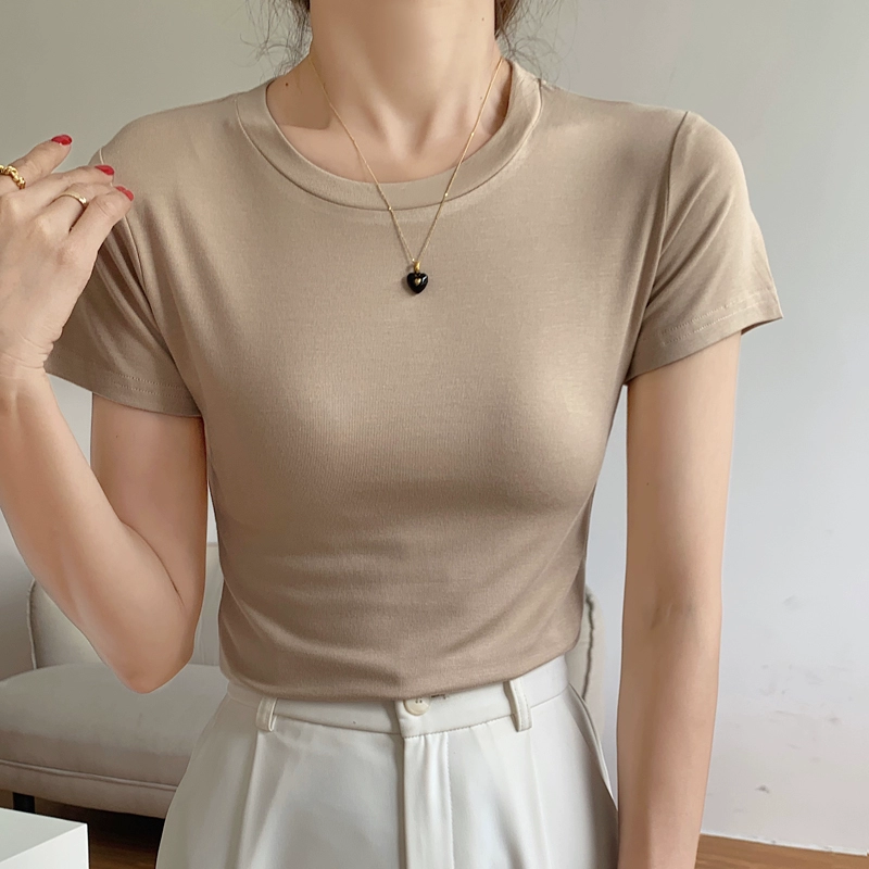 | nameOriginal | Modal simple round neck bust-showing top ins short sleeves |