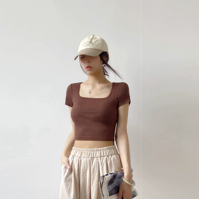 | nameOriginal | Modal small square neck T-shirt sports short sleeves with chest pad |