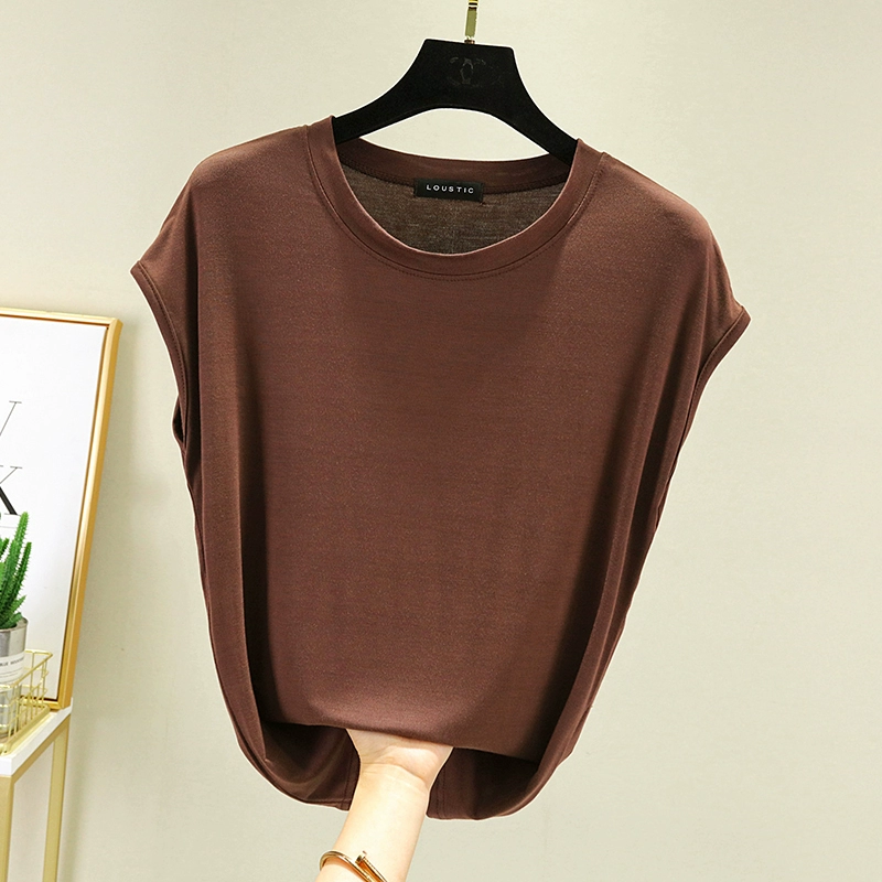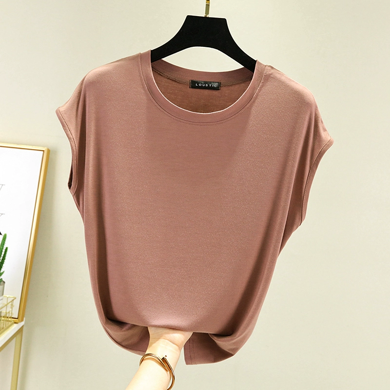 | nameOriginal | Modal T-shirt for women summer outer wear thin round neck sleeveless bottoming shirt versatile solid color inner large size top |