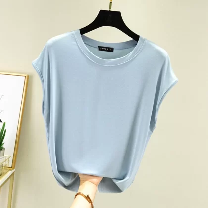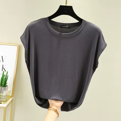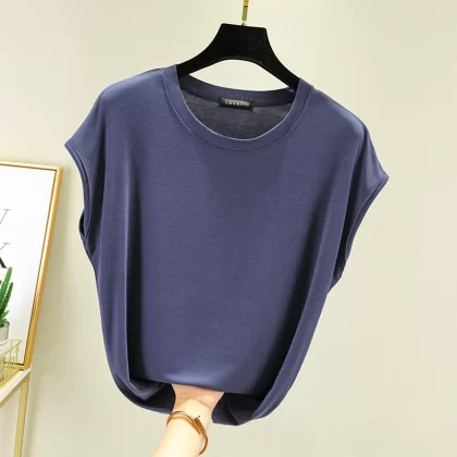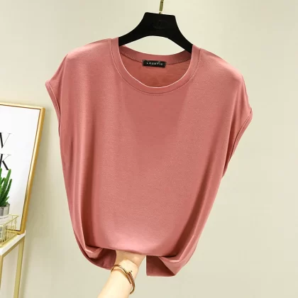 | nameOriginal | Modal T-shirt for women summer outer wear thin round neck sleeveless bottoming shirt versatile solid color inner large size top |