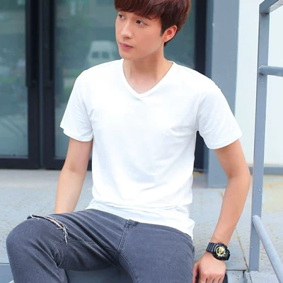 Modal T -shirt vest V -neck middle -aged and elderly sweatshirt short sleeves