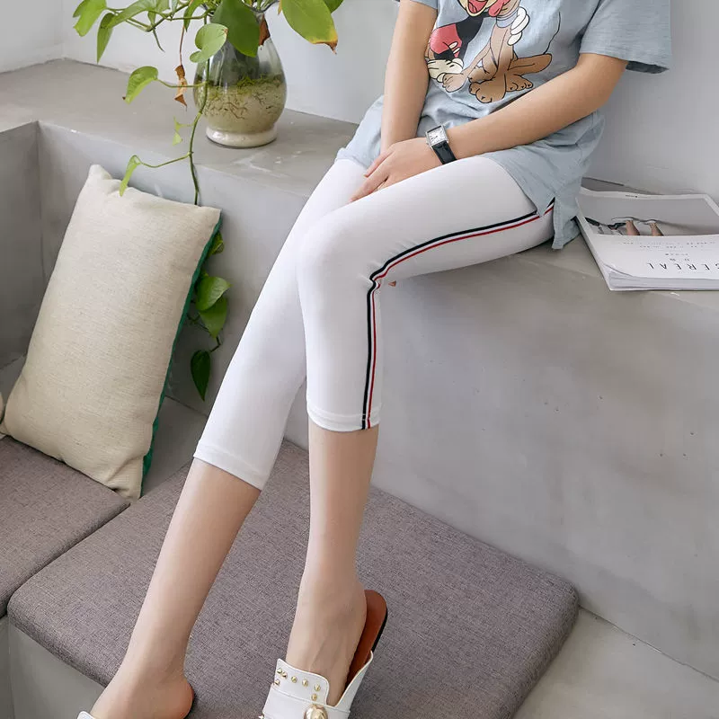 Modal thin cotton 9-point side strip leggings