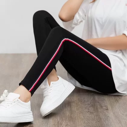 Modal thin cotton 9-point side strip leggings