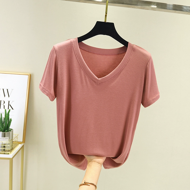 | nameOriginal | Modal v-neck slim fit top short-sleeved T-shirt |