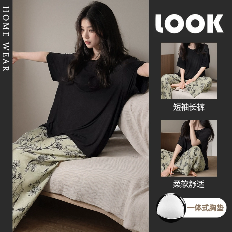 | nameOriginal | Modal women's ice silk round neck pullover home wear pajamas |