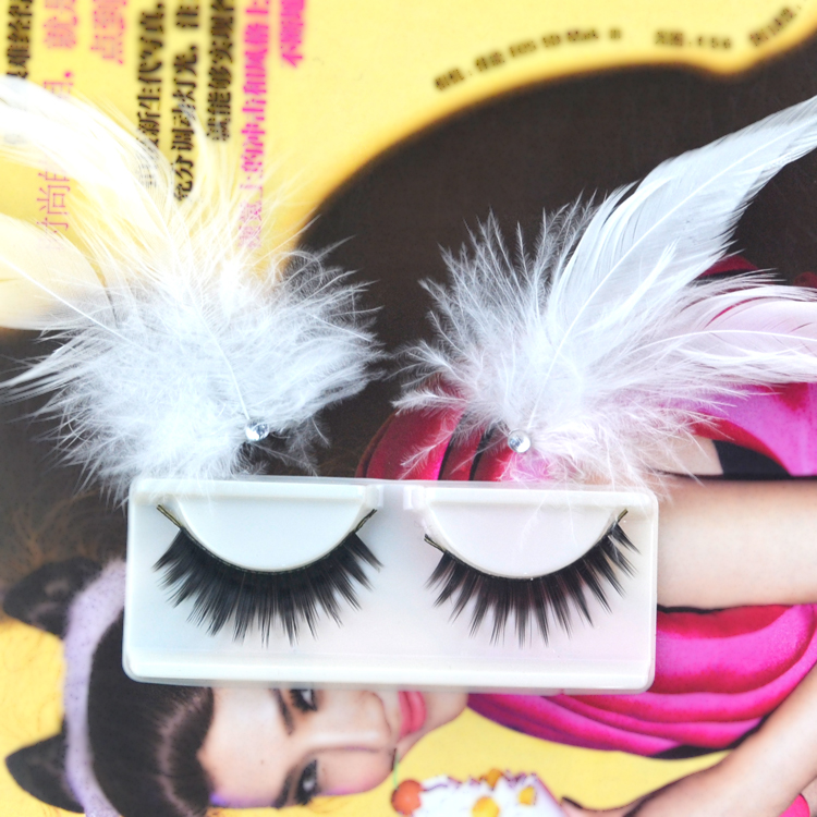 | nameOriginal | Model fashion creative photo white feather with diamond eye tail lengthened exaggerated false eyelashes cosplay eyelashes |