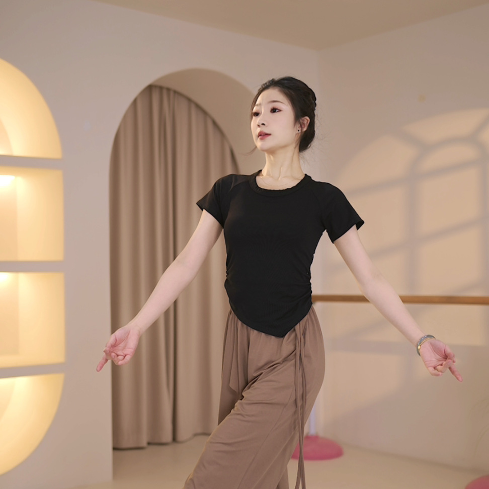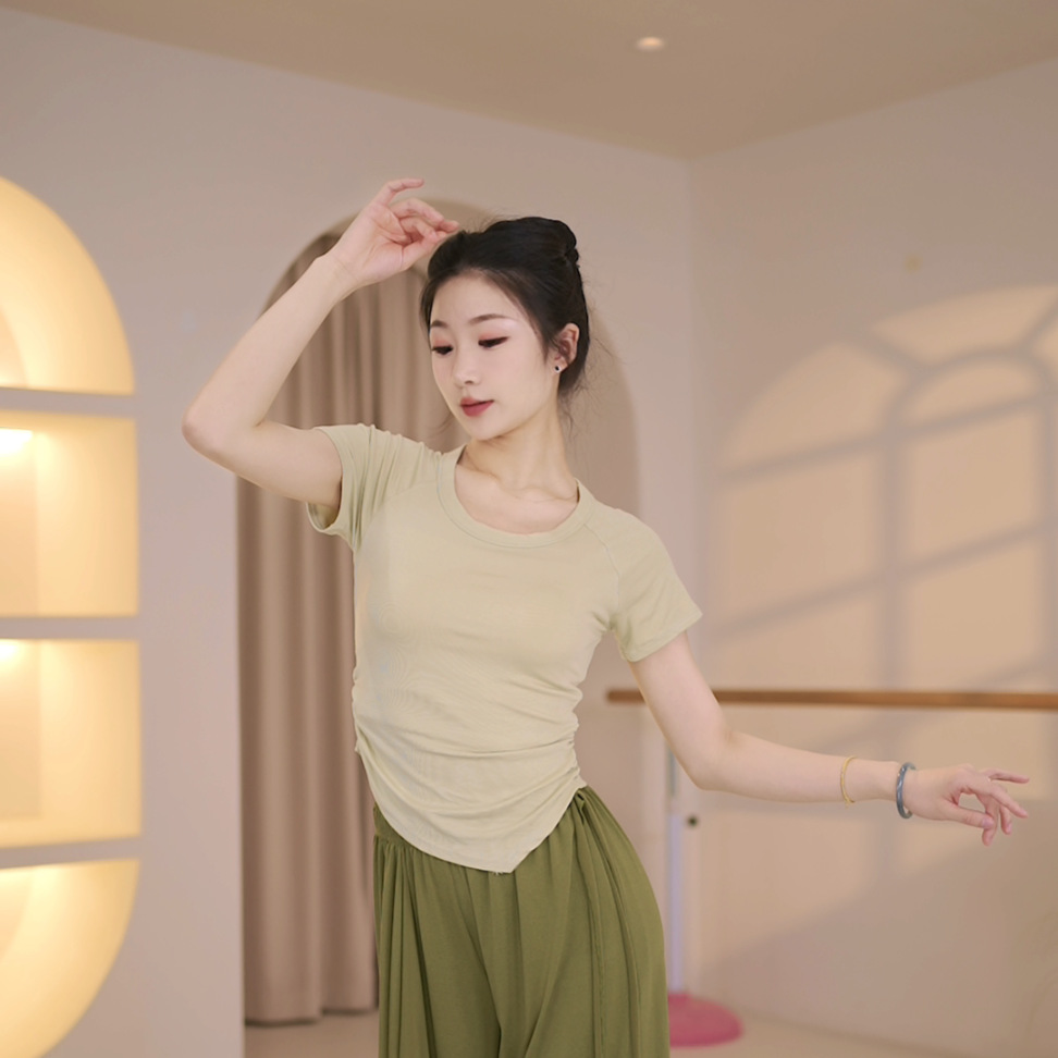 | nameOriginal | Modern dance clothes teacher's top women's summer daily slim fit round neck oblique short sleeve Chinese dance practice clothes |