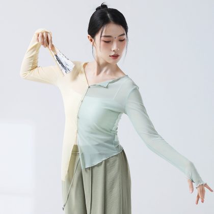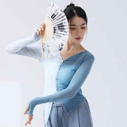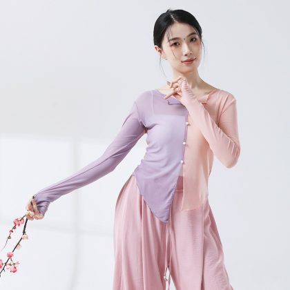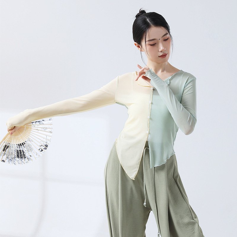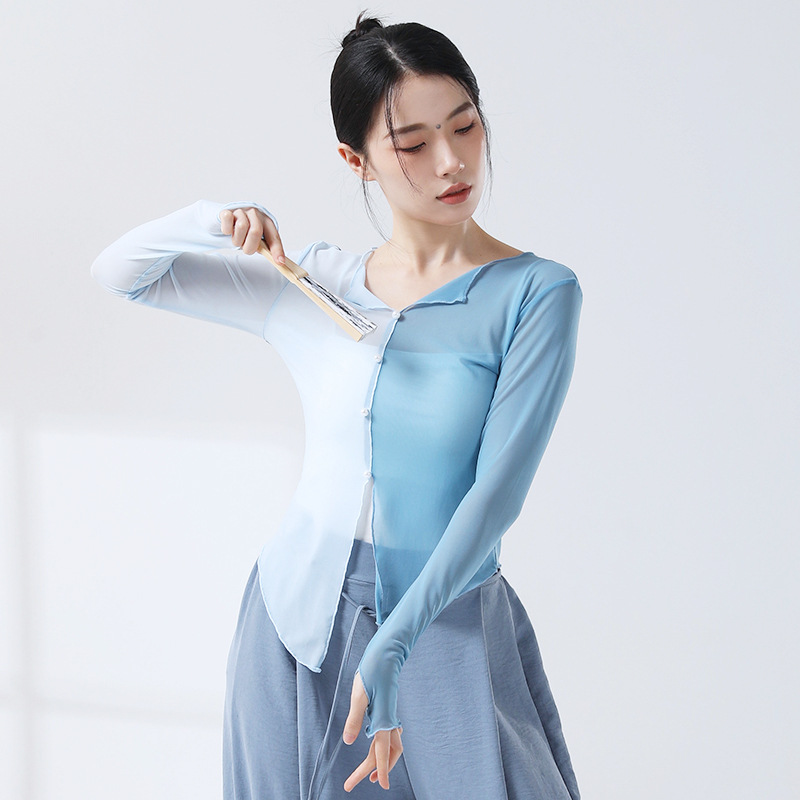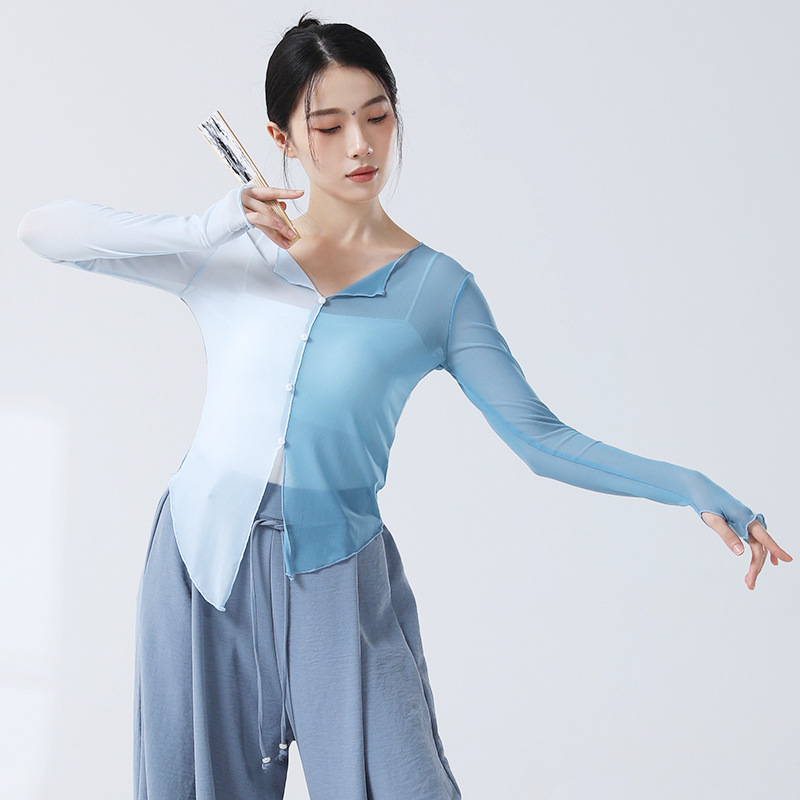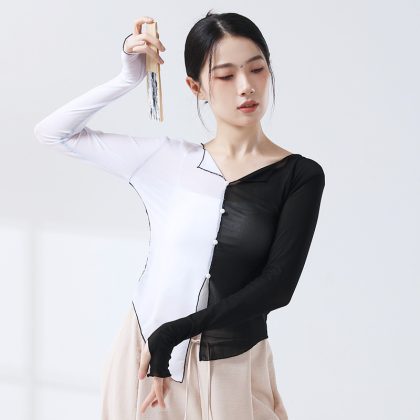 Modern Dance Dancing Suit Body Rhyme Body Long-sleeved Top Color-block Classical Dance Veil Elegant Performance Costume Women