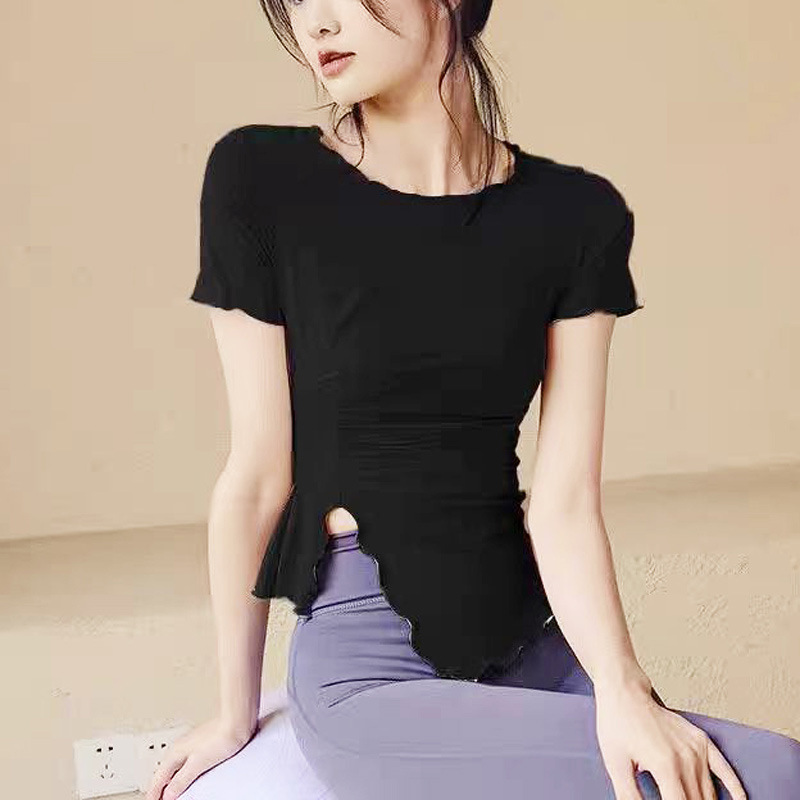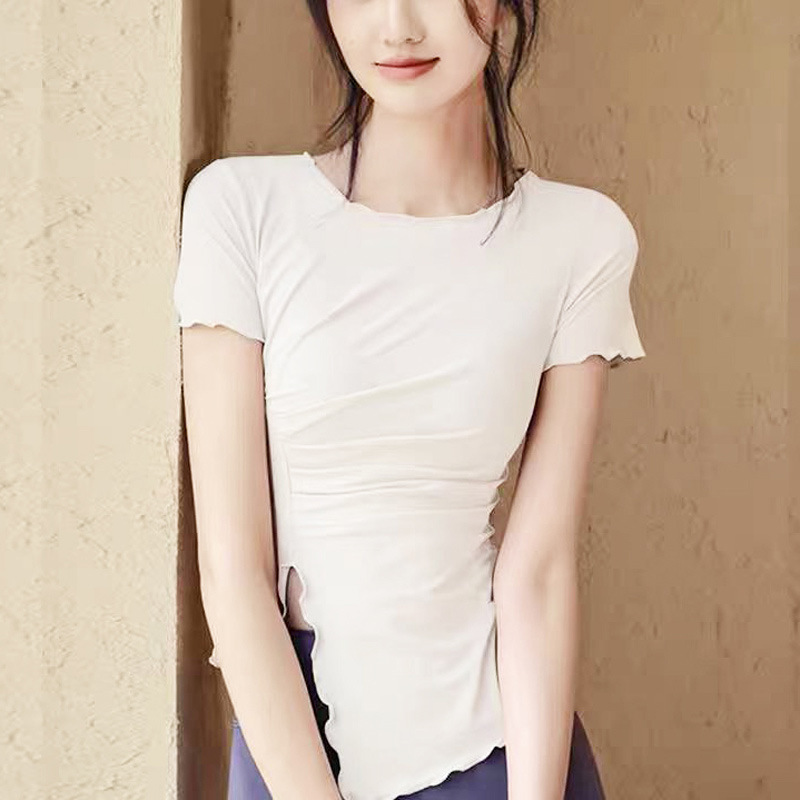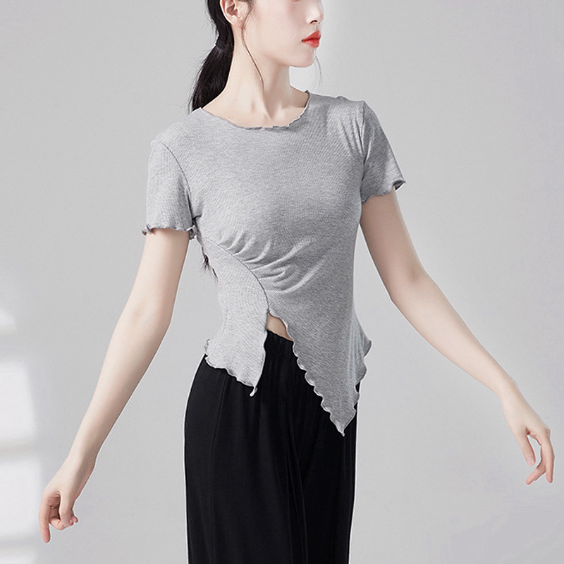 | nameOriginal | Modern Dance Practice Clothing Body Classical Dance Clothing Ear Edge Crewneck T-shirt Women's Top Summer Short-sleeved Split |