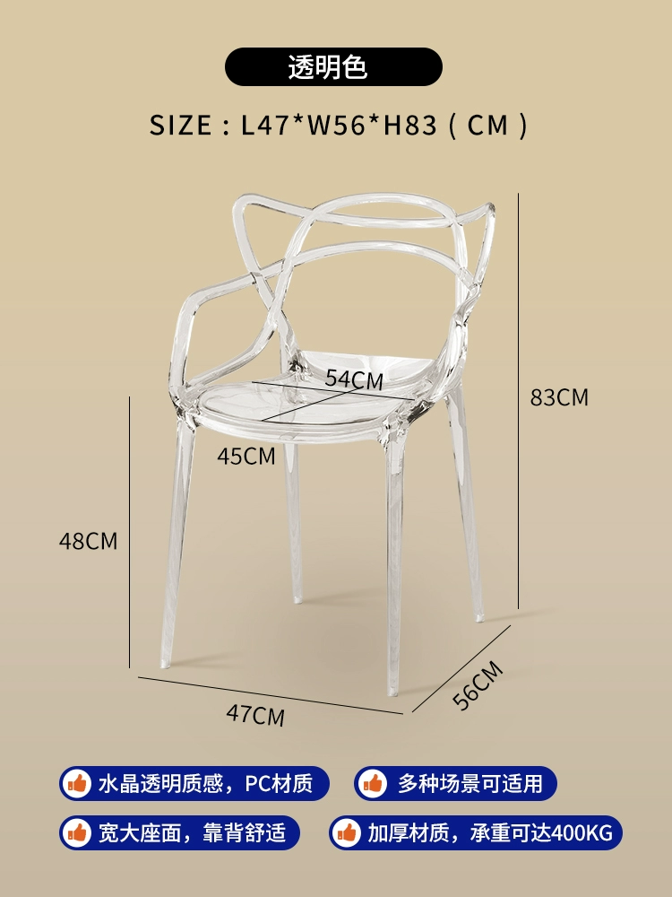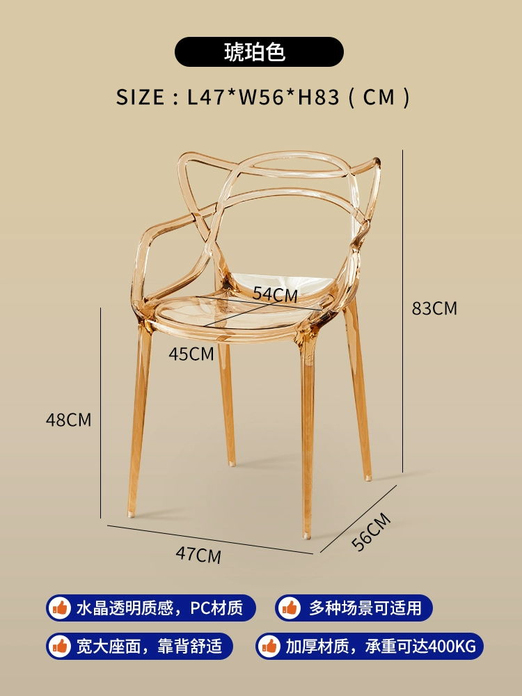 | nameOriginal | Modern Internet celebrity transparent crystal dining chair, simple home backrest chair, Nordic plastic creative stool, light luxury ins |
