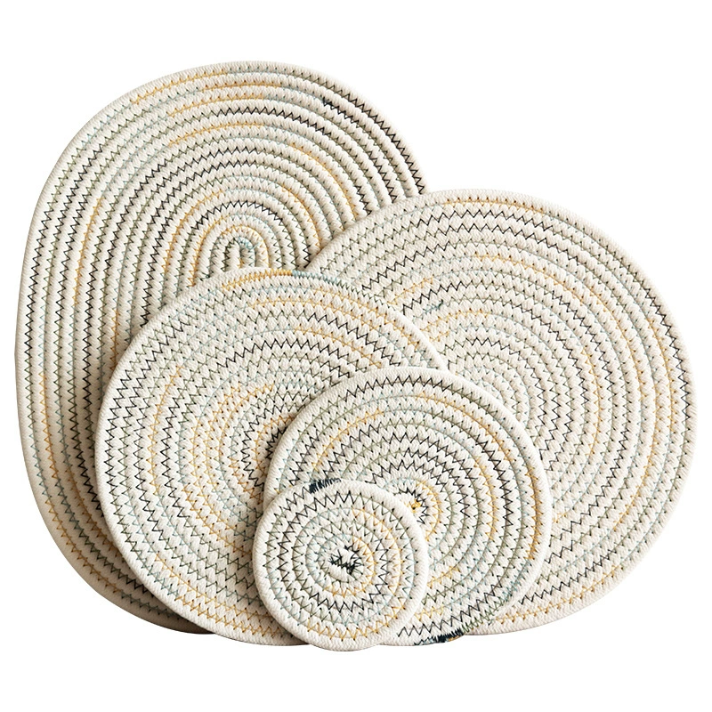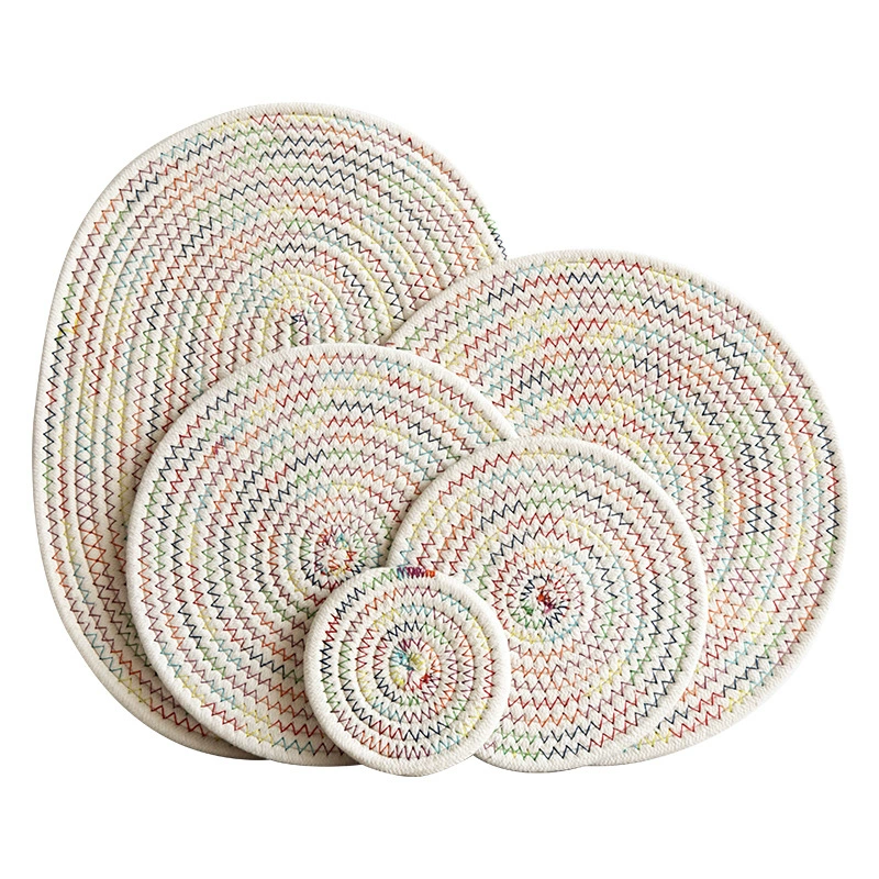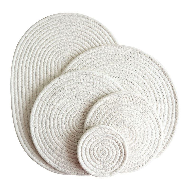 | nameOriginal | Modern simple cotton rope placemat woven placemat home kitchen solid color round pad heat insulation anti-scald pad dining table mat coaster |