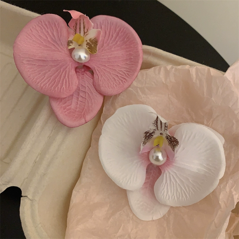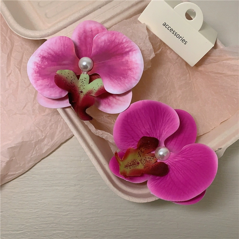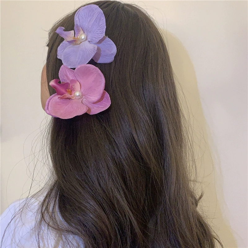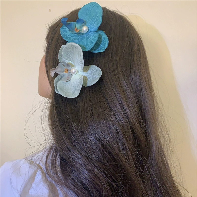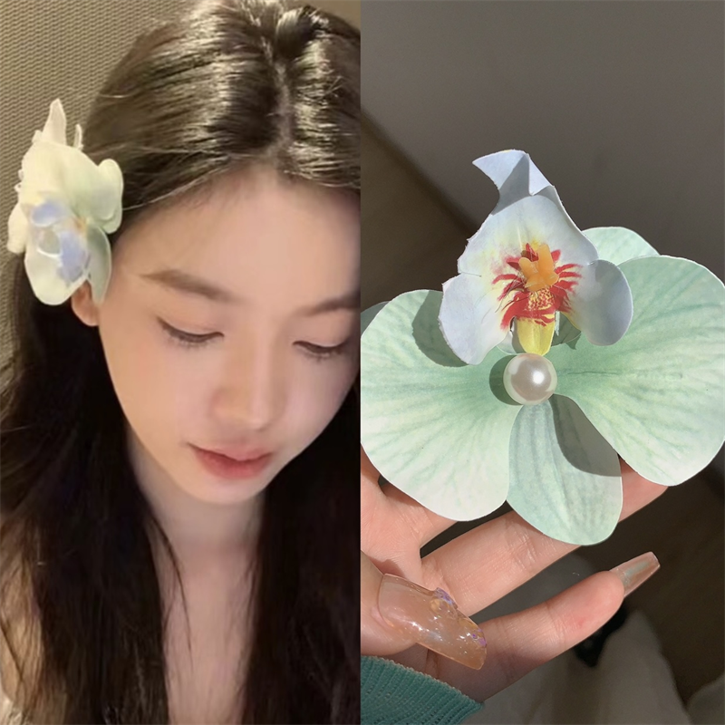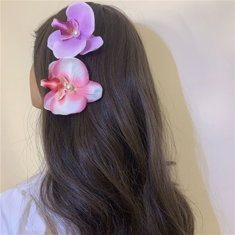 Modern Wearing Flowers ~ Phalaenopsis Side Clip + Grip Clip Atmospheric Photo-shooting Hair Clip Seaside Vacation Hair Accessory Shark Clip