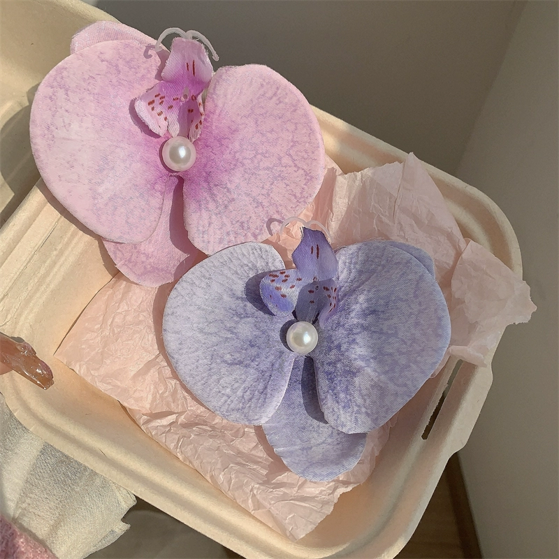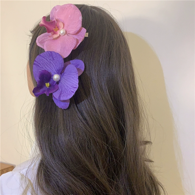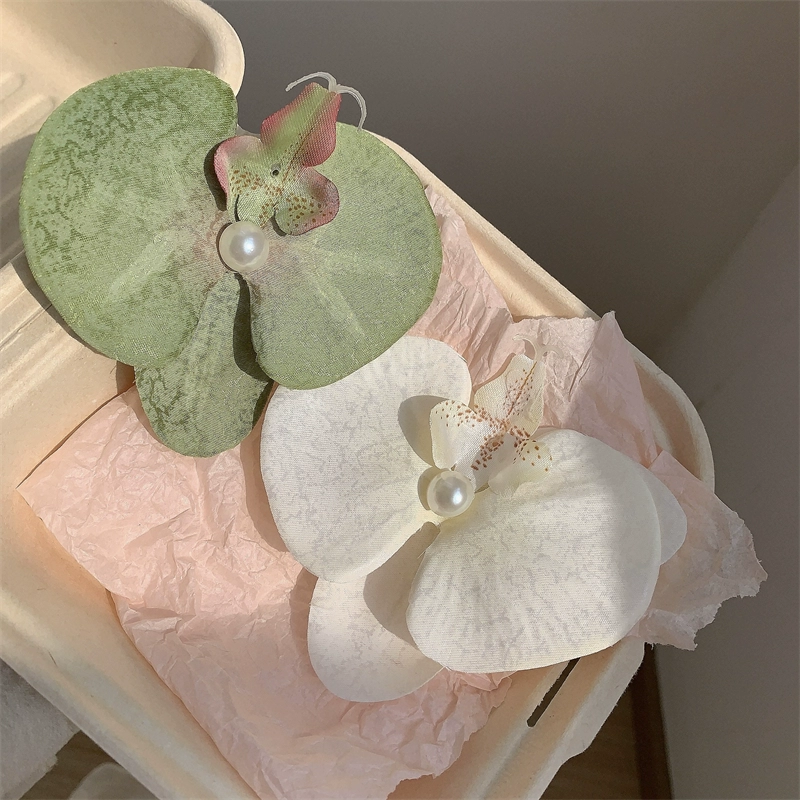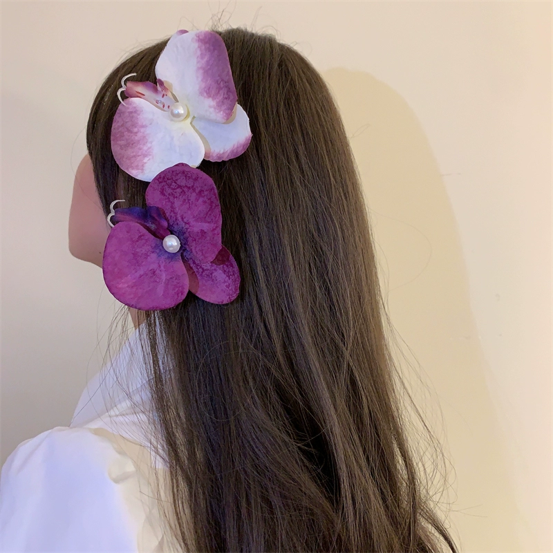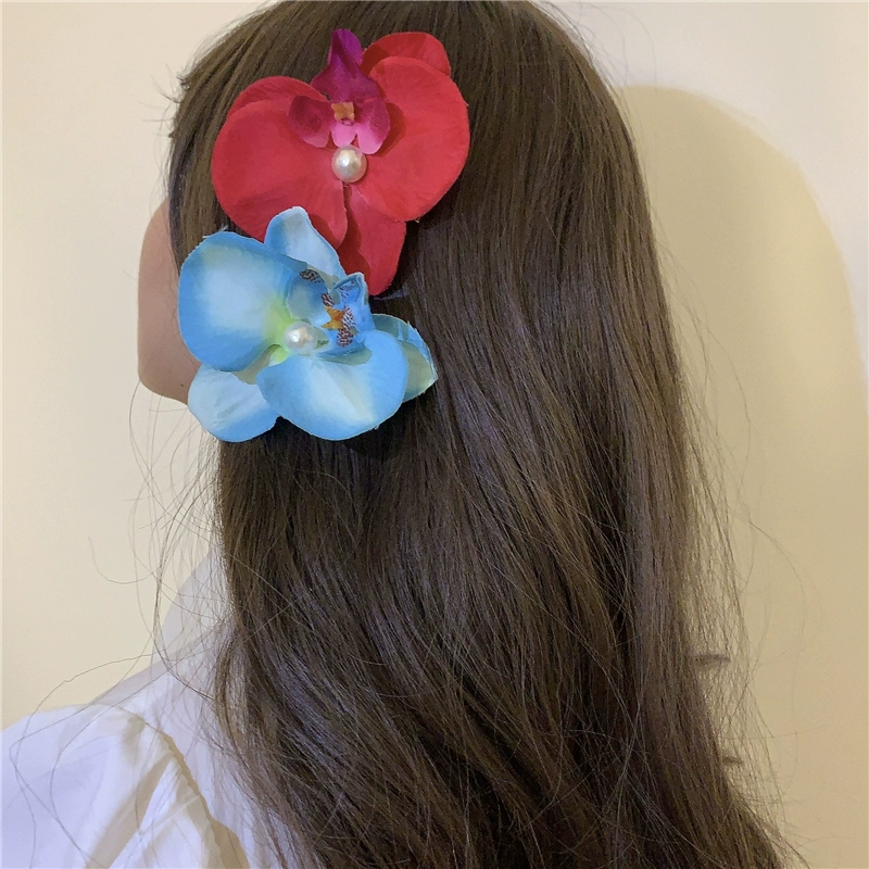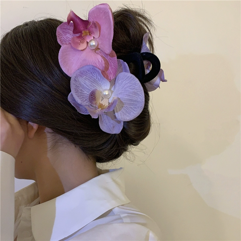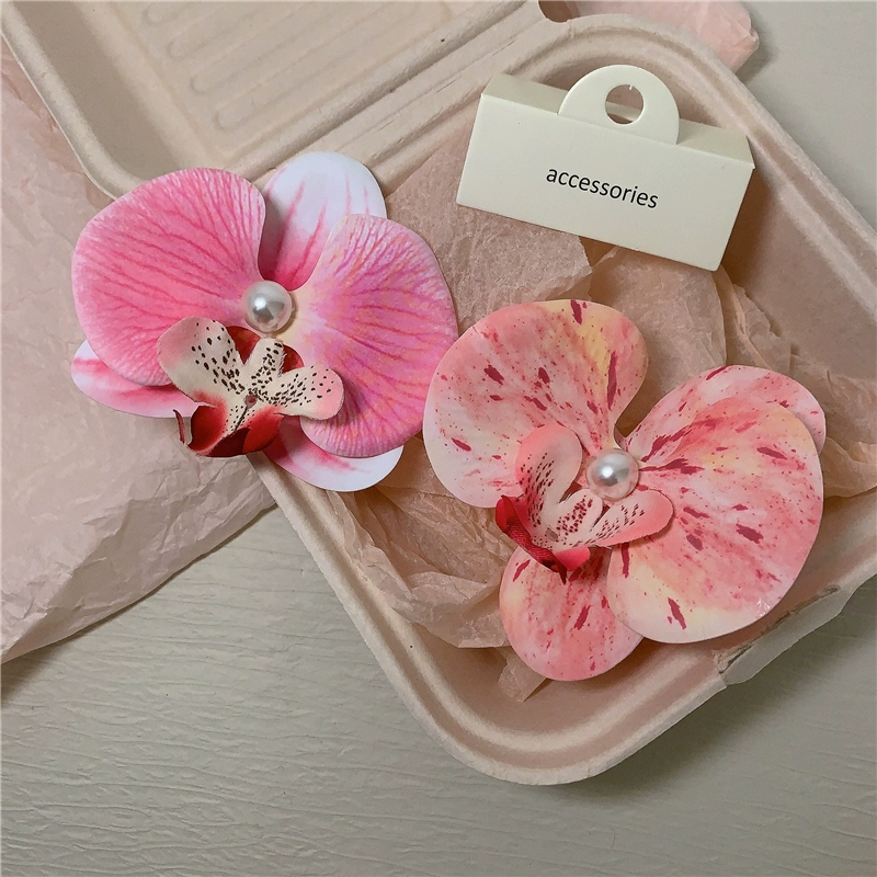 Modern Wearing Flowers ~ Phalaenopsis Side Clip + Grip Clip Atmospheric Photo-shooting Hair Clip Seaside Vacation Hair Accessory Shark Clip
