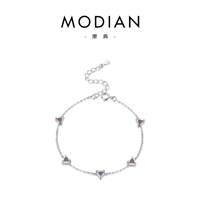 MODIAN 925 sterling silver colorful crystal zircon heart-shaped bracelet Japanese style small fresh lucky versatile jewelry gift