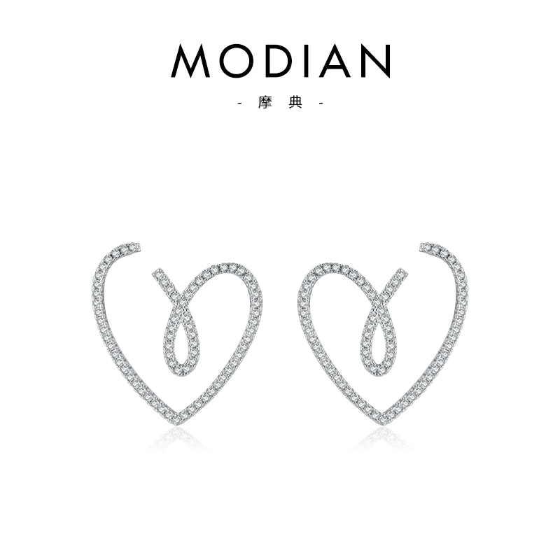 Modian Light Luxury S925 sterling silver micro-studded diamond heart-shaped earrings for women, niche design, fashionable and exaggerated love earrings