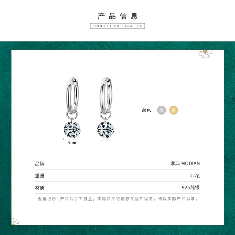 MODIAN S925 all-over sterling silver diamond earrings for women, niche design, light luxury, high-end temperament and fashion