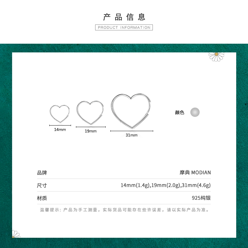 | nameOriginal | MODIAN s925 all-over sterling silver simple ins love earrings for women exaggerated temperament high-end earrings |