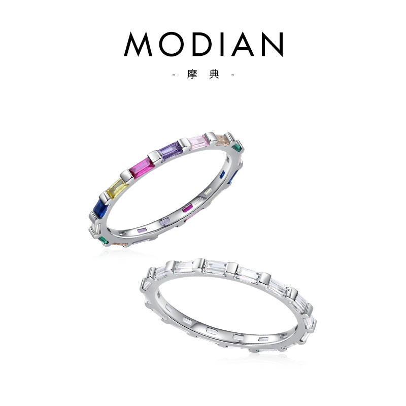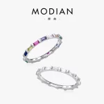 MODIAN small row diamond ring geometric ring women’s 925 silver combination stacking ins index finger tail ring fine matching guard ring