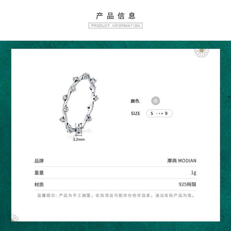 Modian925 Pure silver full -scale star waves with the shape of the niche design of the niche design simple cold wind finger