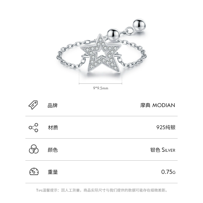 MODIAN’s new sterling silver micro-set star ring women’s niche design fashionable simple temperament adjustable ring