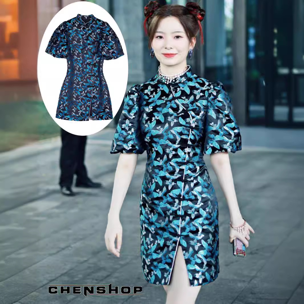 | nameOriginal | Modified Cheongsam Dress Chinese Style Vintage Fashion Ladies Satin Butterfly Print Puff Sleeve Slim Fit Dress |