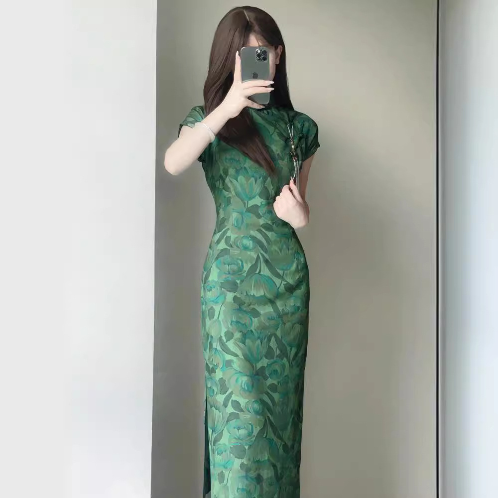 | nameOriginal | Modified Printed Cheongsam Young Girl's Vintage Republic of China Style Elegant Noble Tight Waist Long Old Shanghai Dress |