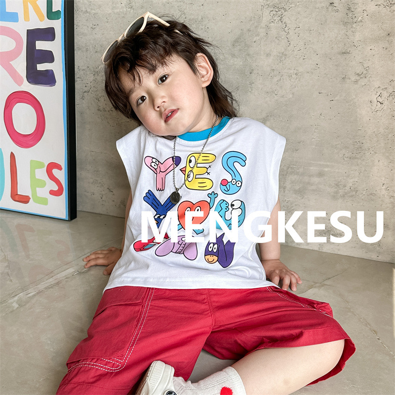 | nameOriginal | Moe Su Children's Vest 2024 Summer New Style Boys Cotton Colorblock Sleeveless T-shirt Boys Baby Summer Top |
