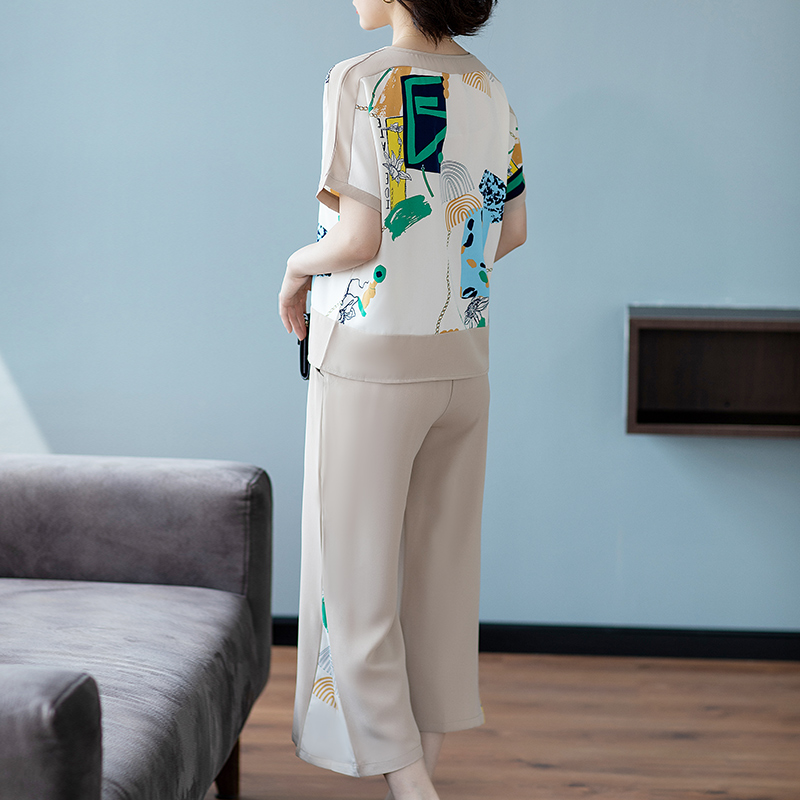 | nameOriginal | Mom Casual Fashion Short-sleeved suit 2024 Summer New Middle-aged and Elderly Women's Elegant Summer Dress 40 Years Old Two-piece Set |
