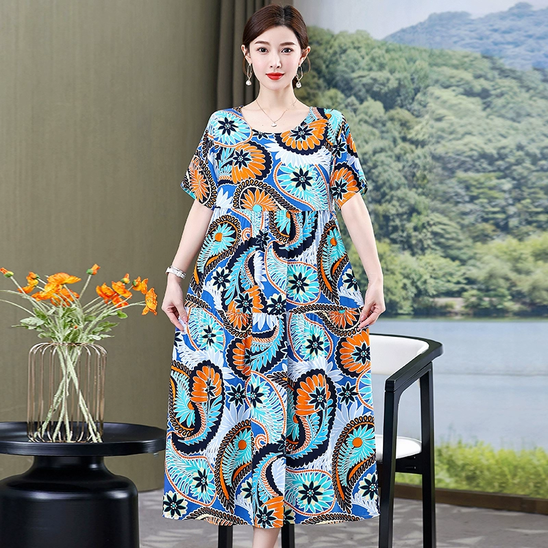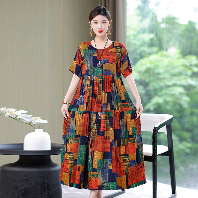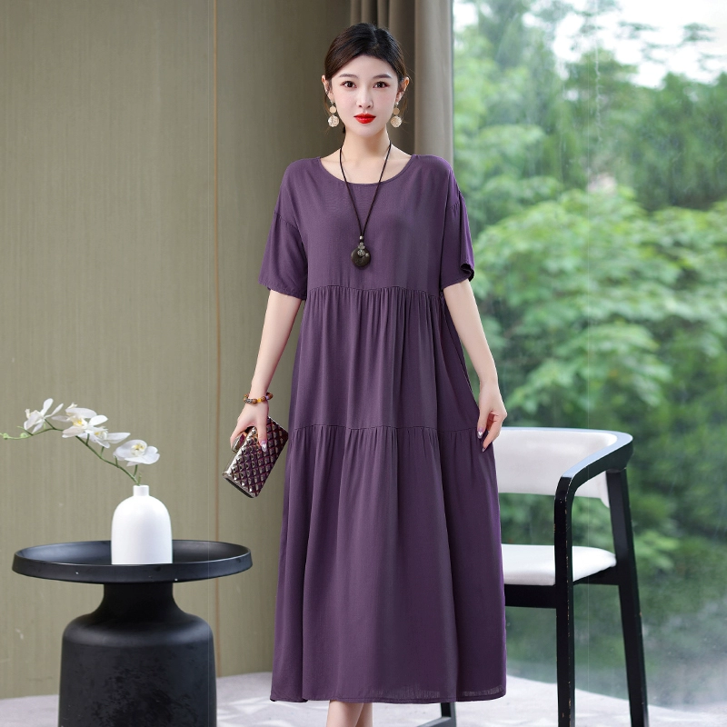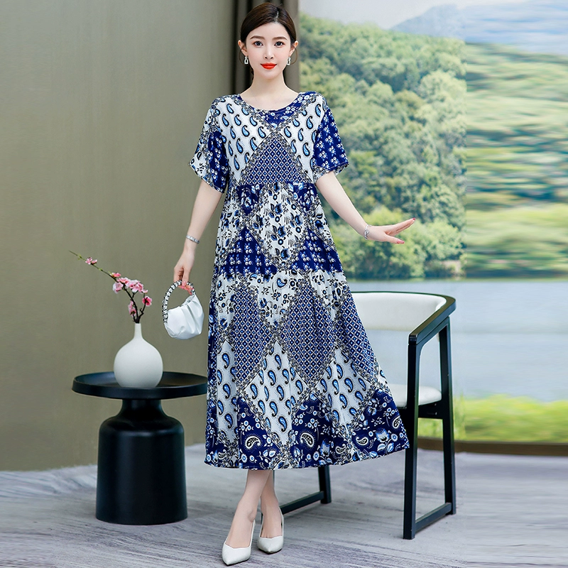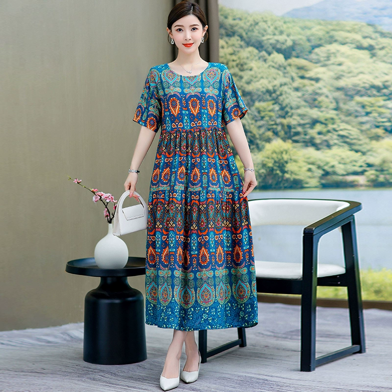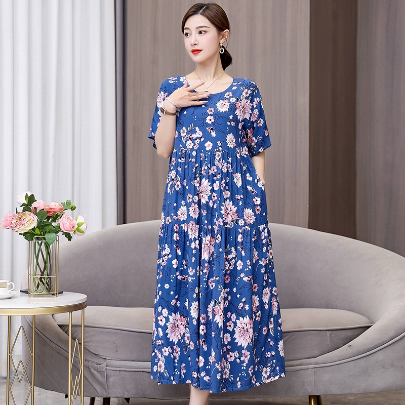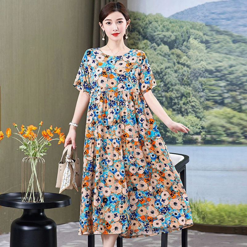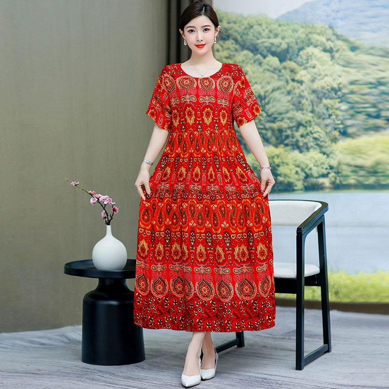 | nameOriginal | Mom cotton silk dress summer middle-aged and elderly women's short-sleeved high-end temperament foreign trade artificial cotton skirt with pockets |