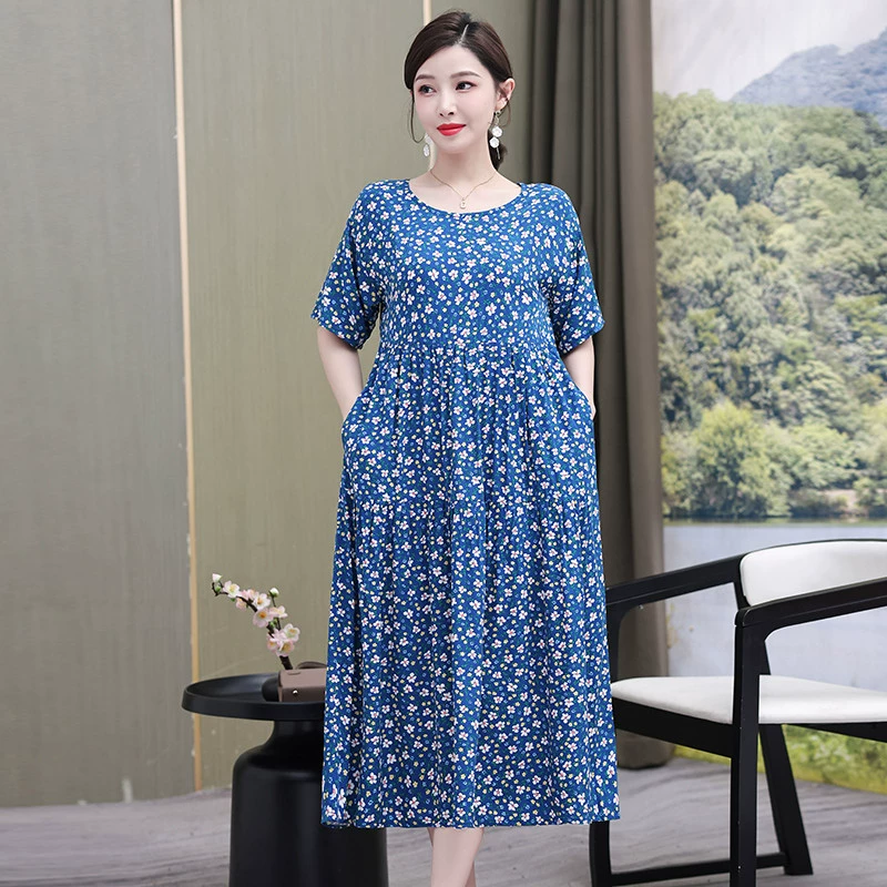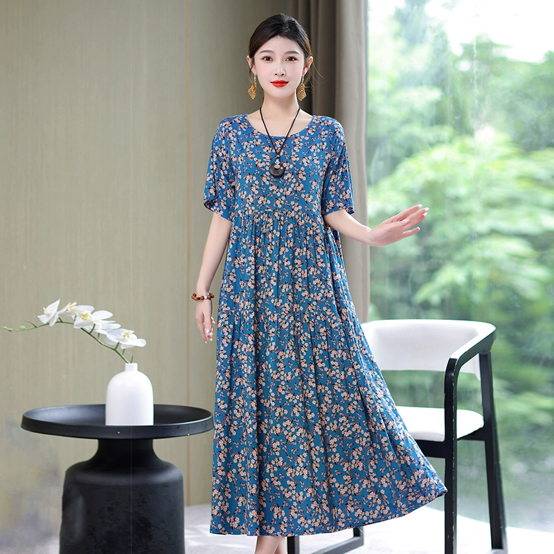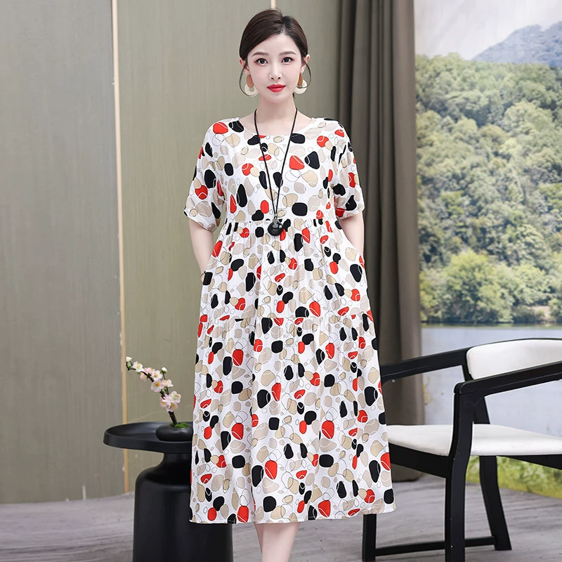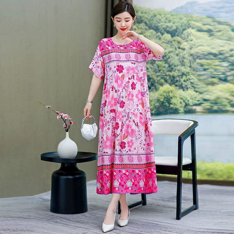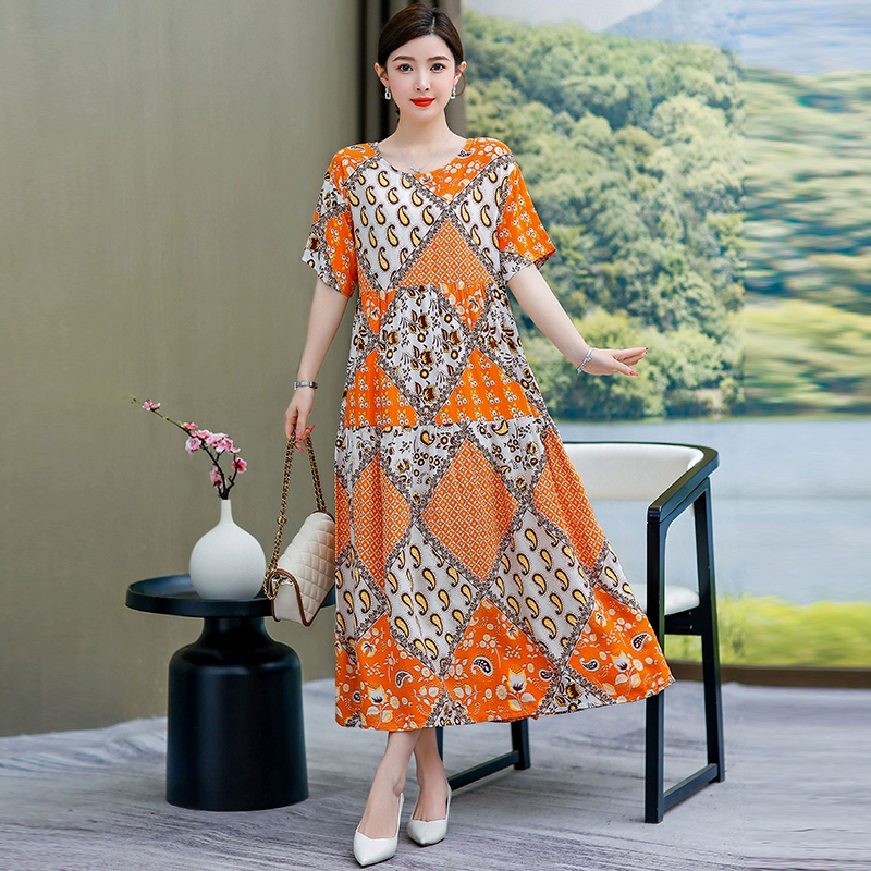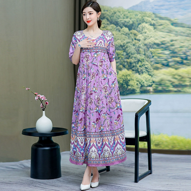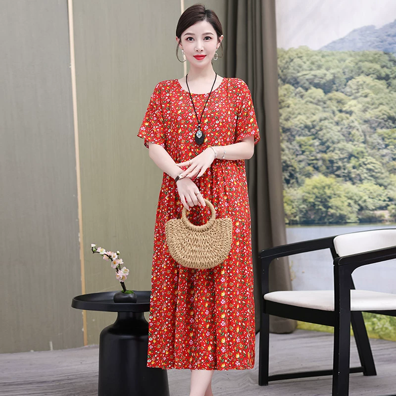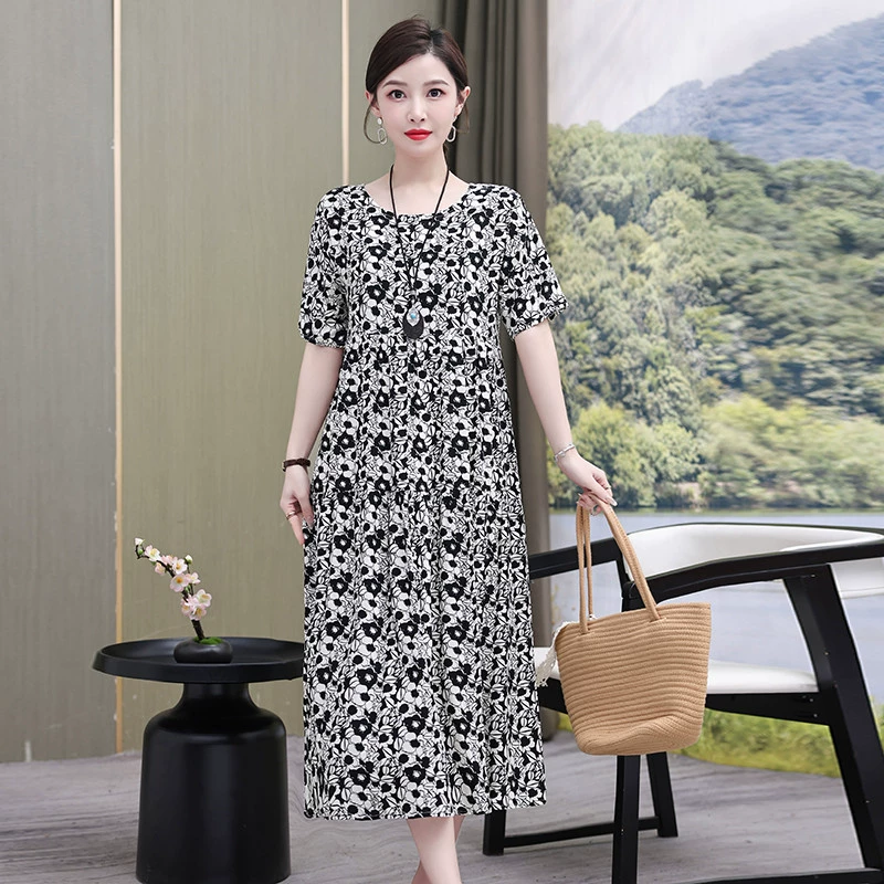 | nameOriginal | Mom cotton silk dress summer middle-aged and elderly women's short-sleeved high-end temperament foreign trade artificial cotton skirt with pockets |