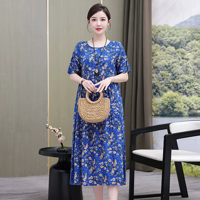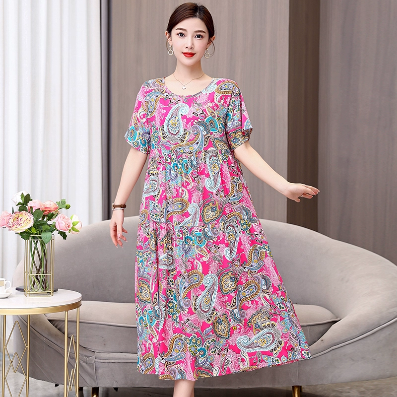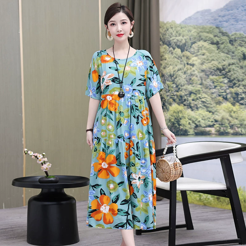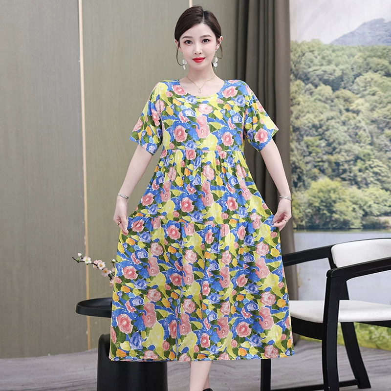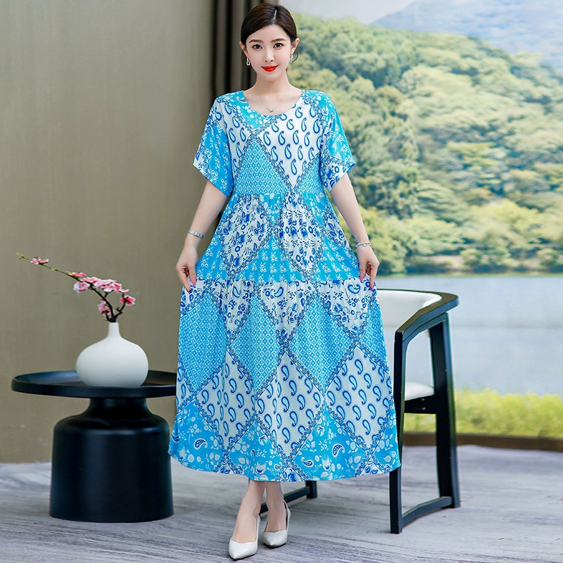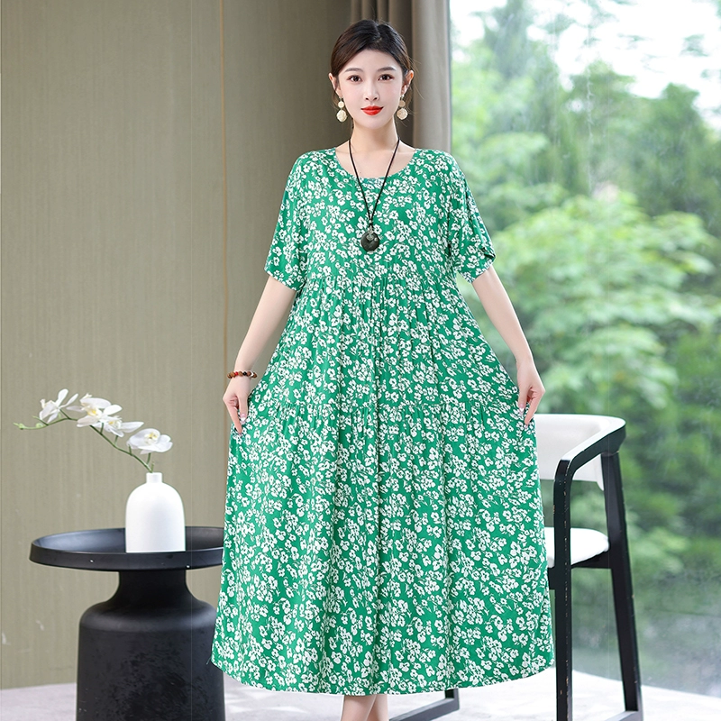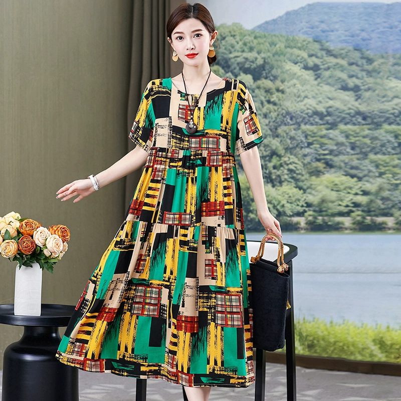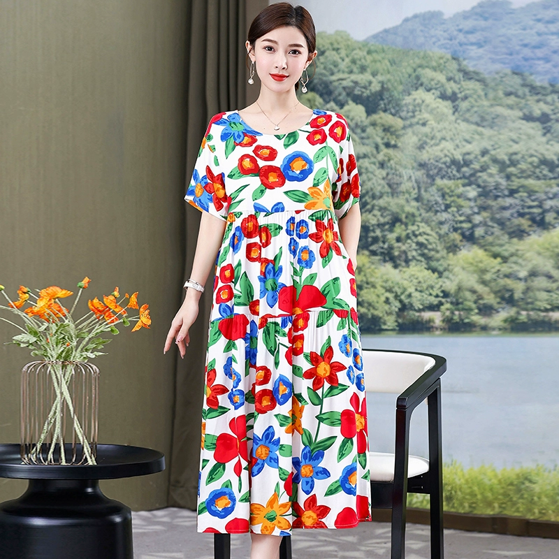 | nameOriginal | Mom cotton silk dress summer middle-aged and elderly women's short-sleeved high-end temperament foreign trade artificial cotton skirt with pockets |