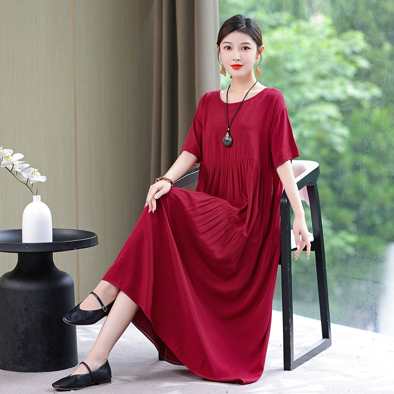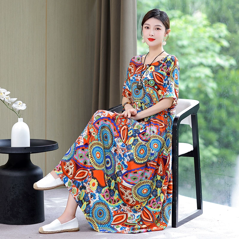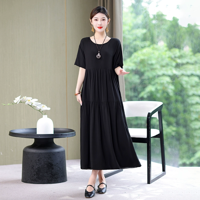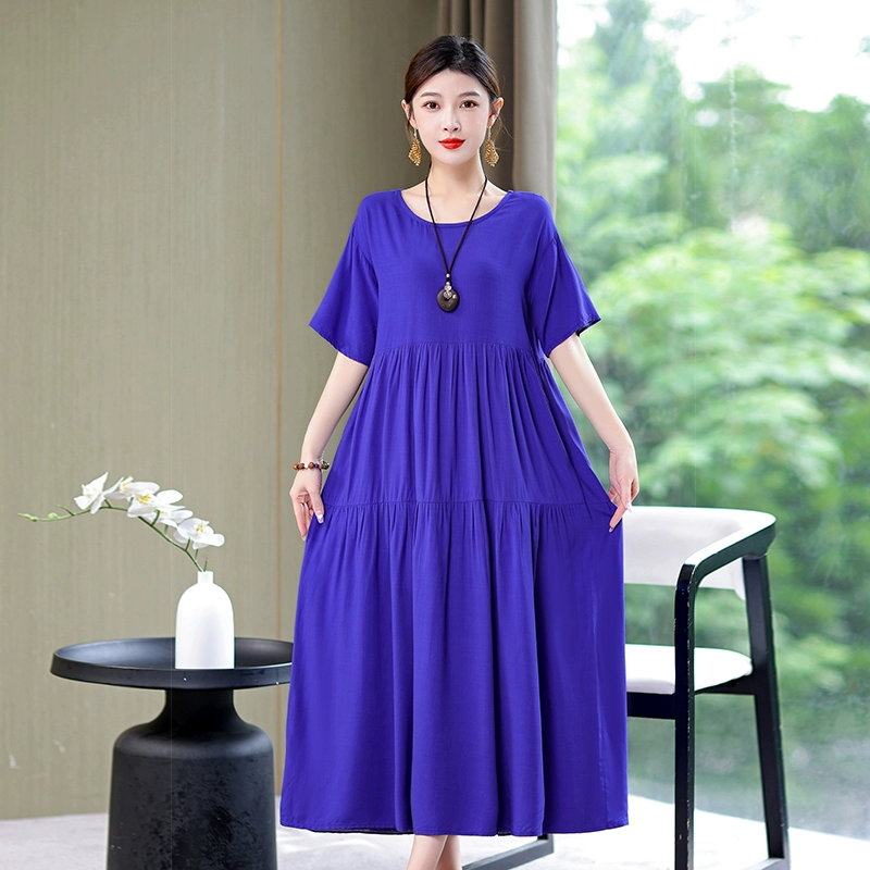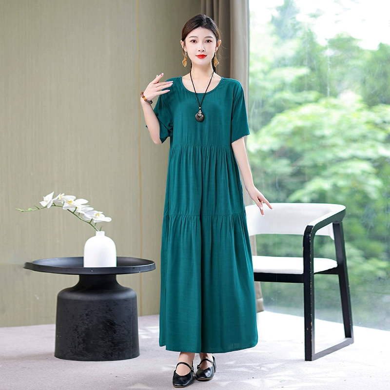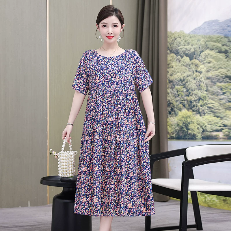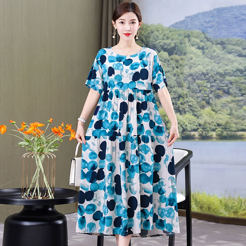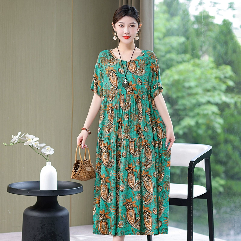 | nameOriginal | Mom cotton silk dress summer middle-aged and elderly women's short-sleeved high-end temperament foreign trade artificial cotton skirt with pockets |