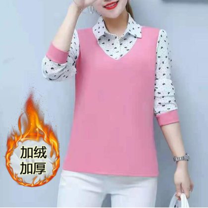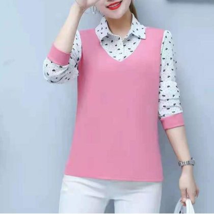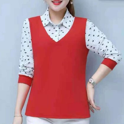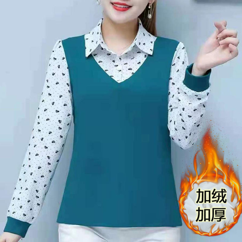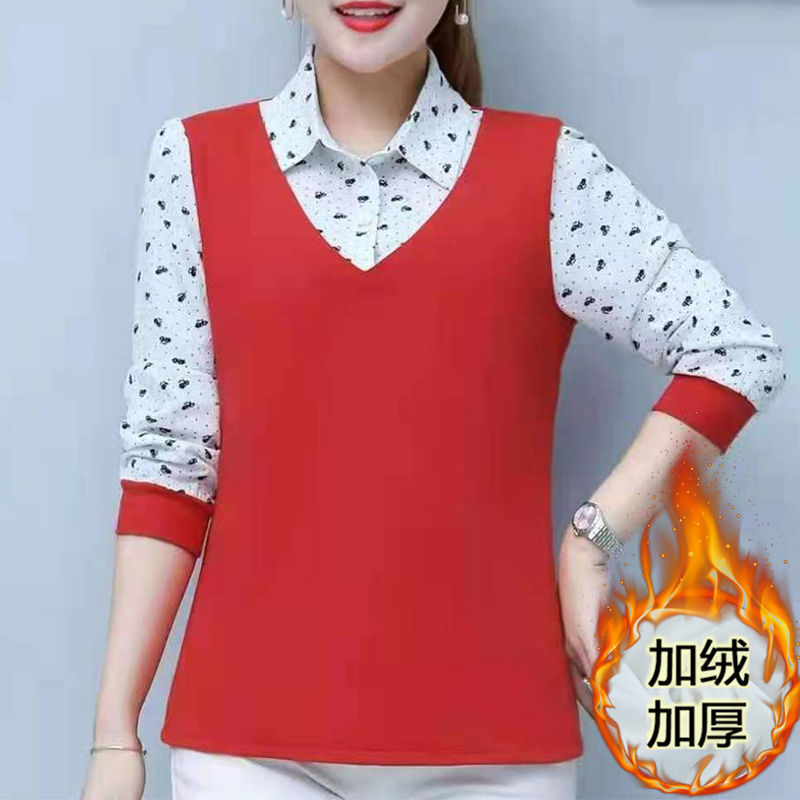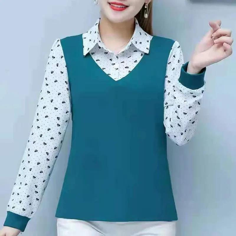 | nameOriginal | Mom Fake Two-piece Long-sleeved Autumn New Stitching Shirt T-shirt Fashionable All-match Belly-covering Slimming Base Shirt Top for Women |