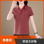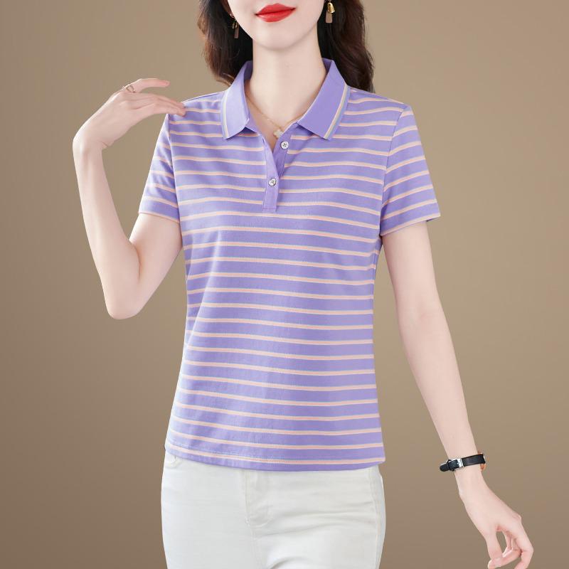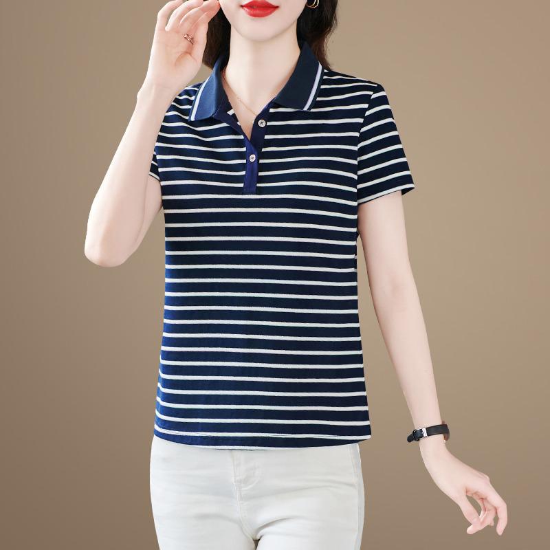 | nameOriginal | Mom polo shirt T-shirt women's summer new striped lapel short sleeve plus size sports leisure collared women's top 5 |