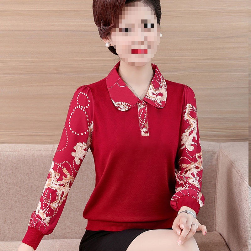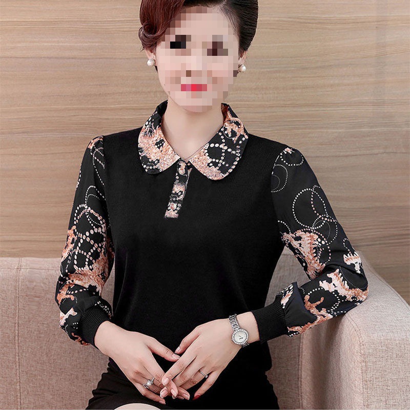 | nameOriginal | Mom spring 2022 new chiffon western style top middle-aged and elderly women's collar long sleeve T-shirt base shirt |