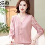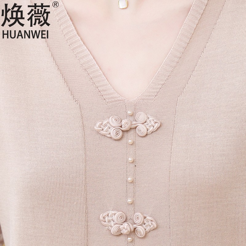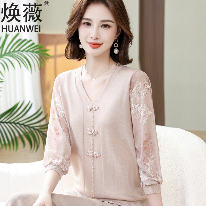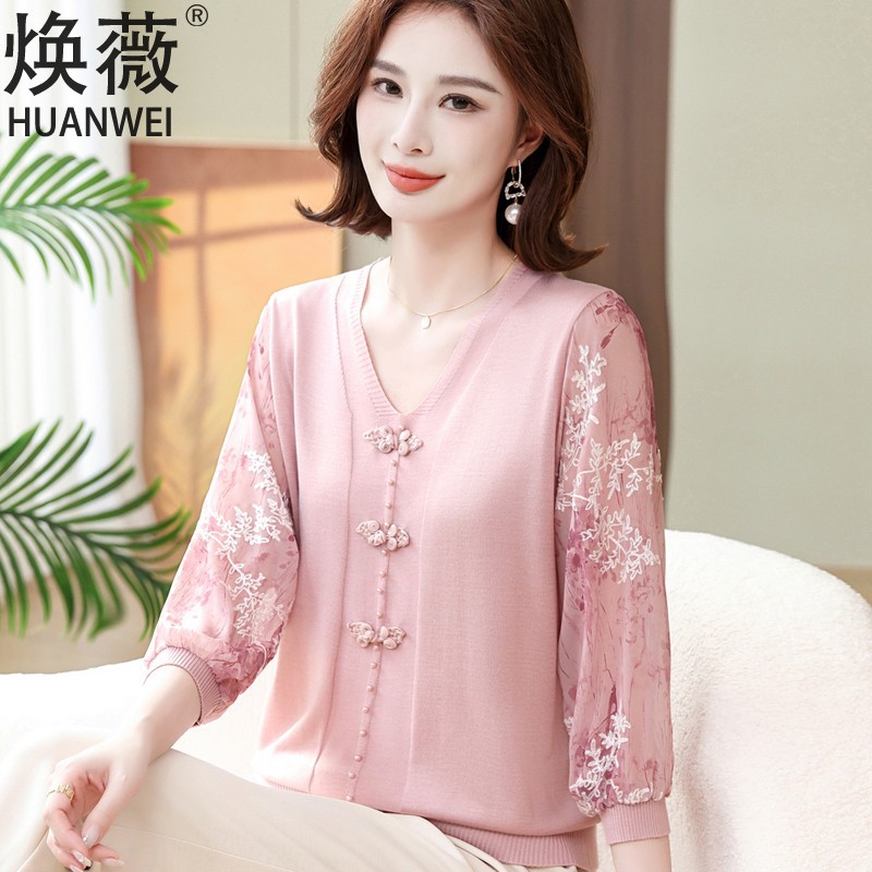 | nameOriginal | Mom spring new knitted top Western style yarn sleeve bottoming shirt thin middle-aged and elderly women Summer Ice Silk small shirt T-shirt |