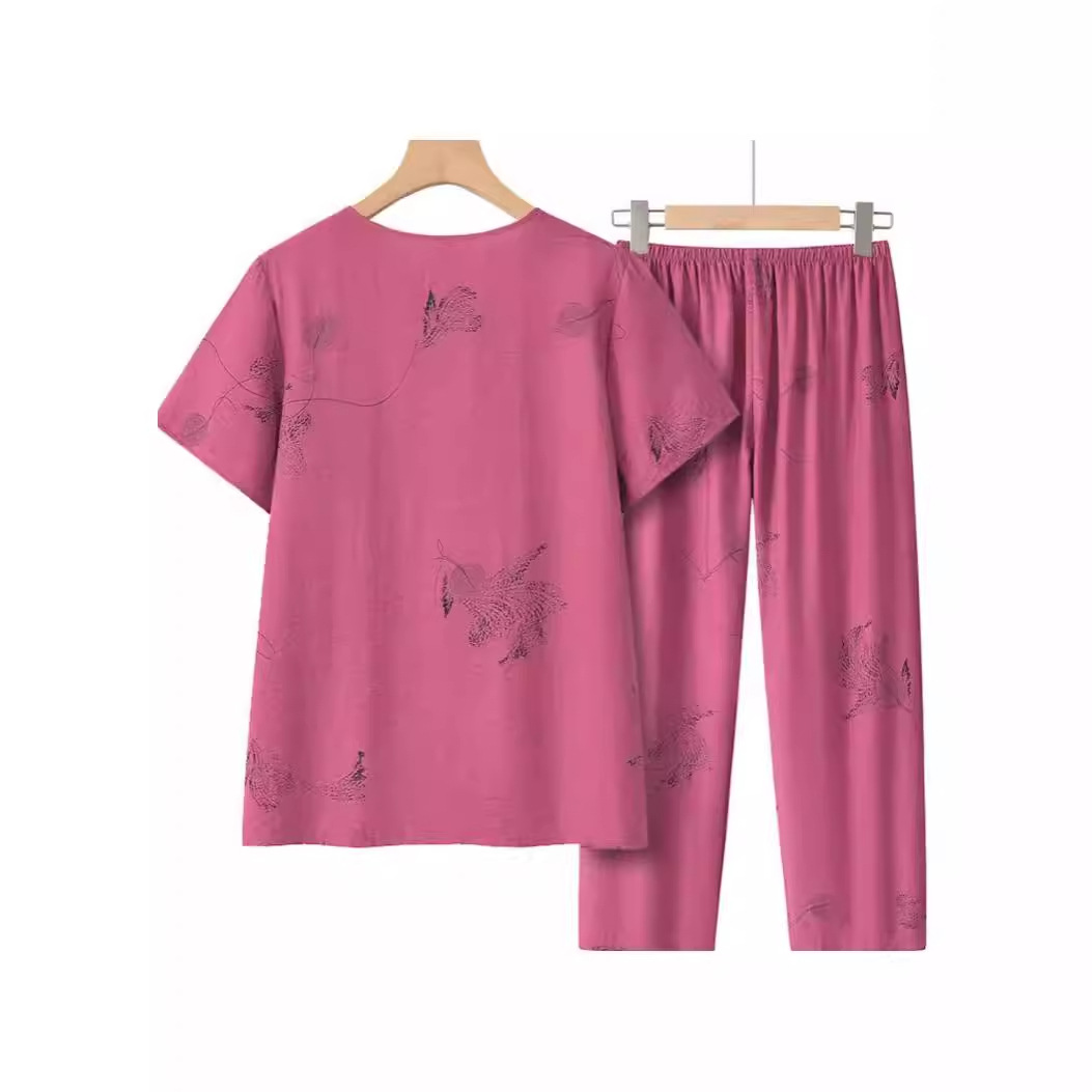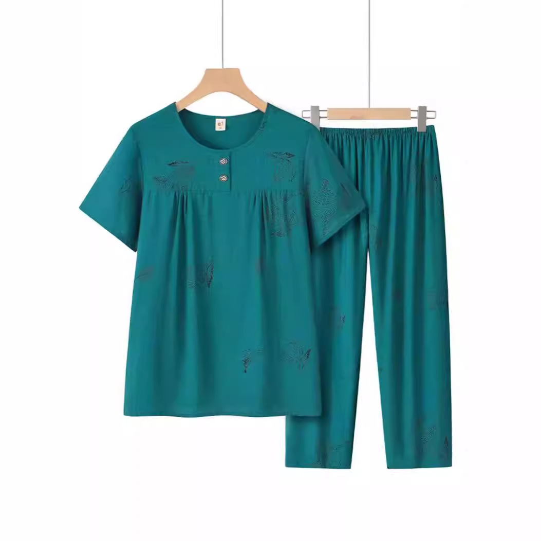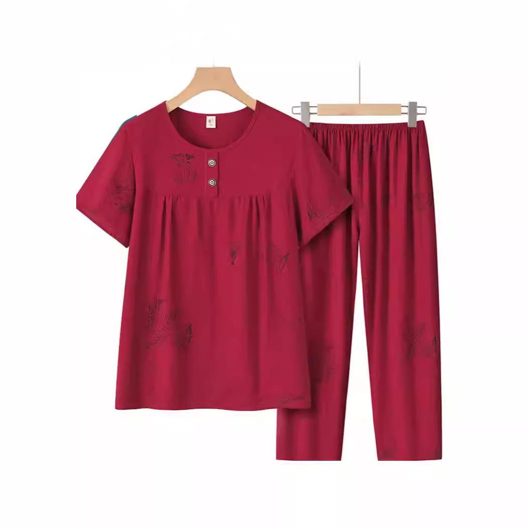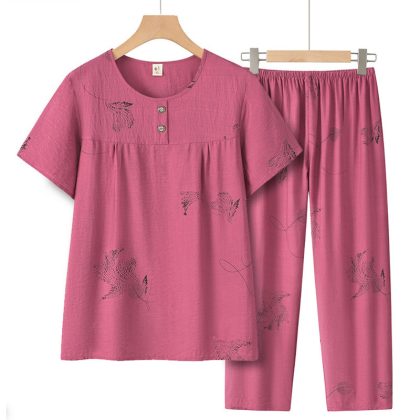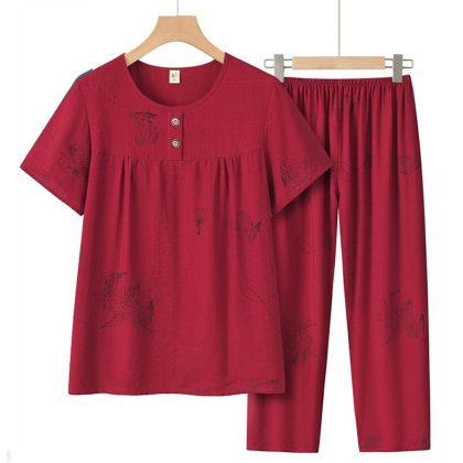 | nameOriginal | Mom Summer Casual Slub Cotton suit Grandma Short-sleeved Top Loose Two-piece plus size for Middle-aged and Elderly |